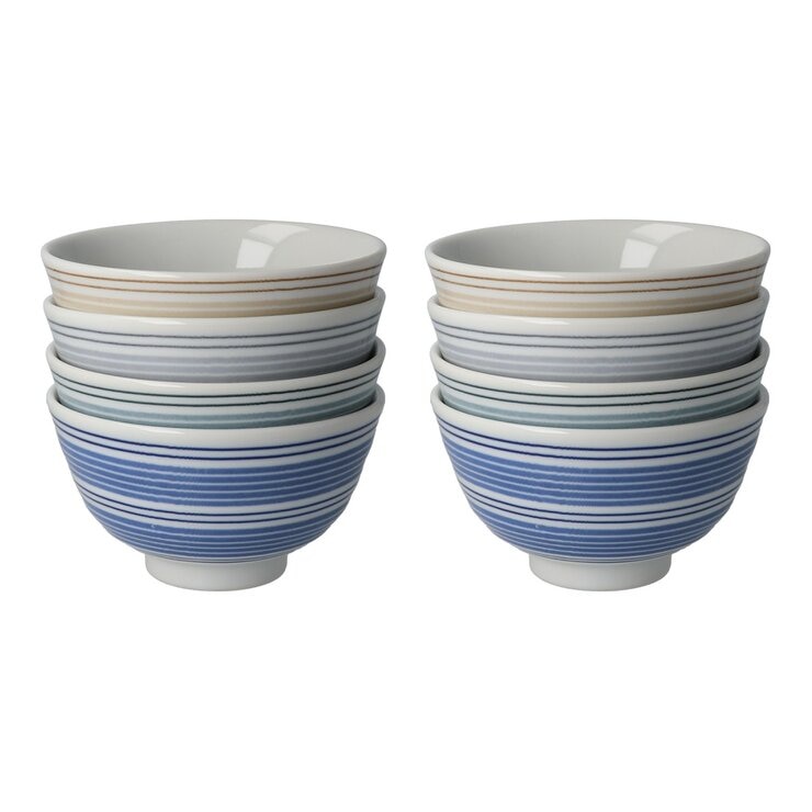 Minoyaki Japanese Ceramic Rice Bowl 8-Piece Set
