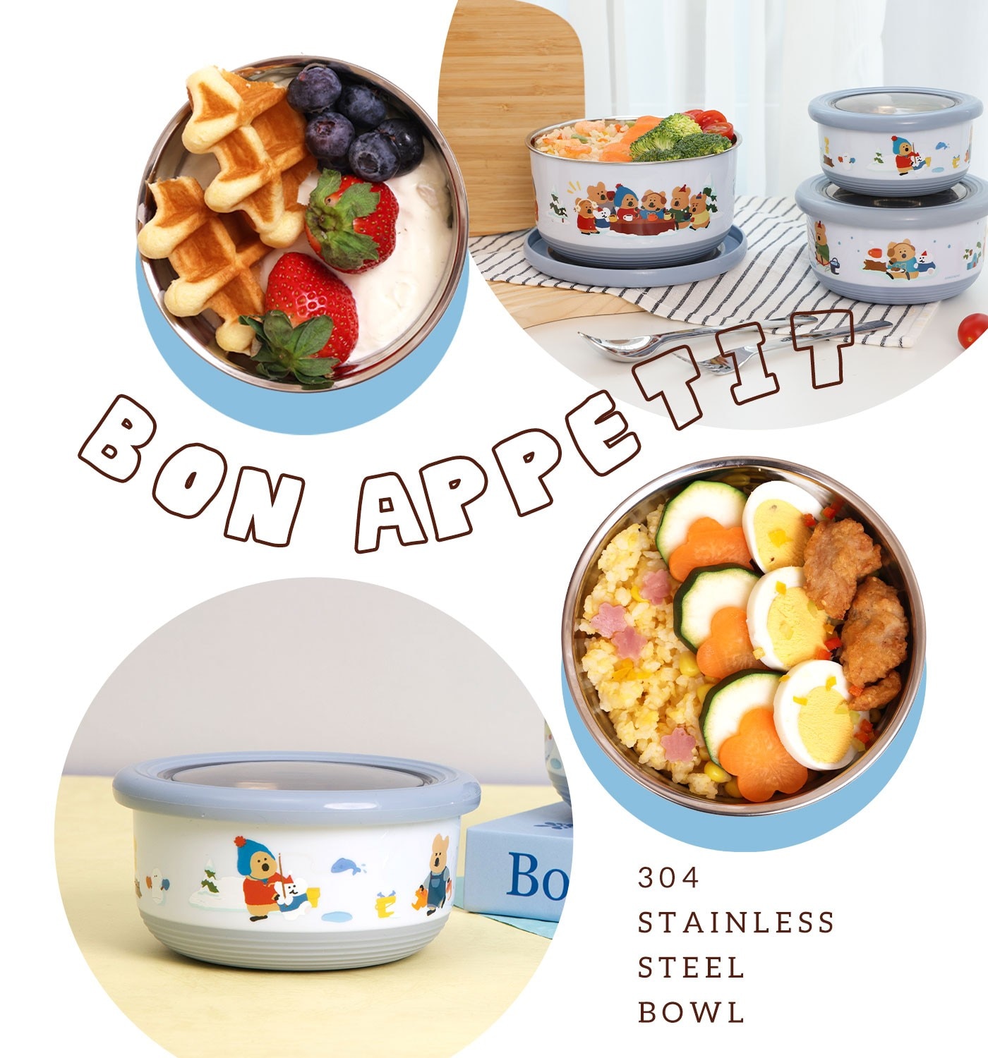 | 品名 | DINOTAENG 呆萌町 304不鏽鋼雙層隔熱碗 3件組 冬季 |