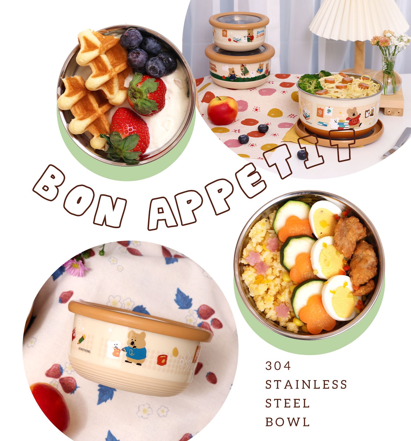 | 注意事項 | 1. 首次使用前請以中性清潔劑清洗。 2. 請勿放入微波爐、烤箱、電鍋、烘碗機及洗碗機等加熱設備。 3. 不繡鋼碗上緣採安全捲邊收合,並無真空密封也無使用黏著劑,建議不要將碗長時間浸泡於水裡,以免進水。 4. 本產品圖案非永久印刷,使用或清洗時產生之摩擦造成圖案的印刷耗損而變淡、剝落純屬正常現象。 5. 避免靠近火源及高溫處,以免造成火災或損壞。 6. 可隔熱,但無保溫效能。 7. 本產品內部如有破損或嚴重刮傷,建議更換以保持產品安全。 8. 請勿在盛裝熱湯的情況下蓋上上蓋,以避免因熱氣產生壓力膨脹,導致燙傷或造成汙染等危險。 9. 為了避免蓋子吸附味道和染色,請勿長時間接觸重色重味道食物或浸泡在水裡,使用後應立即洗淨並晾乾。 10. 供食品接觸用途。 11. 供重複使用。 |