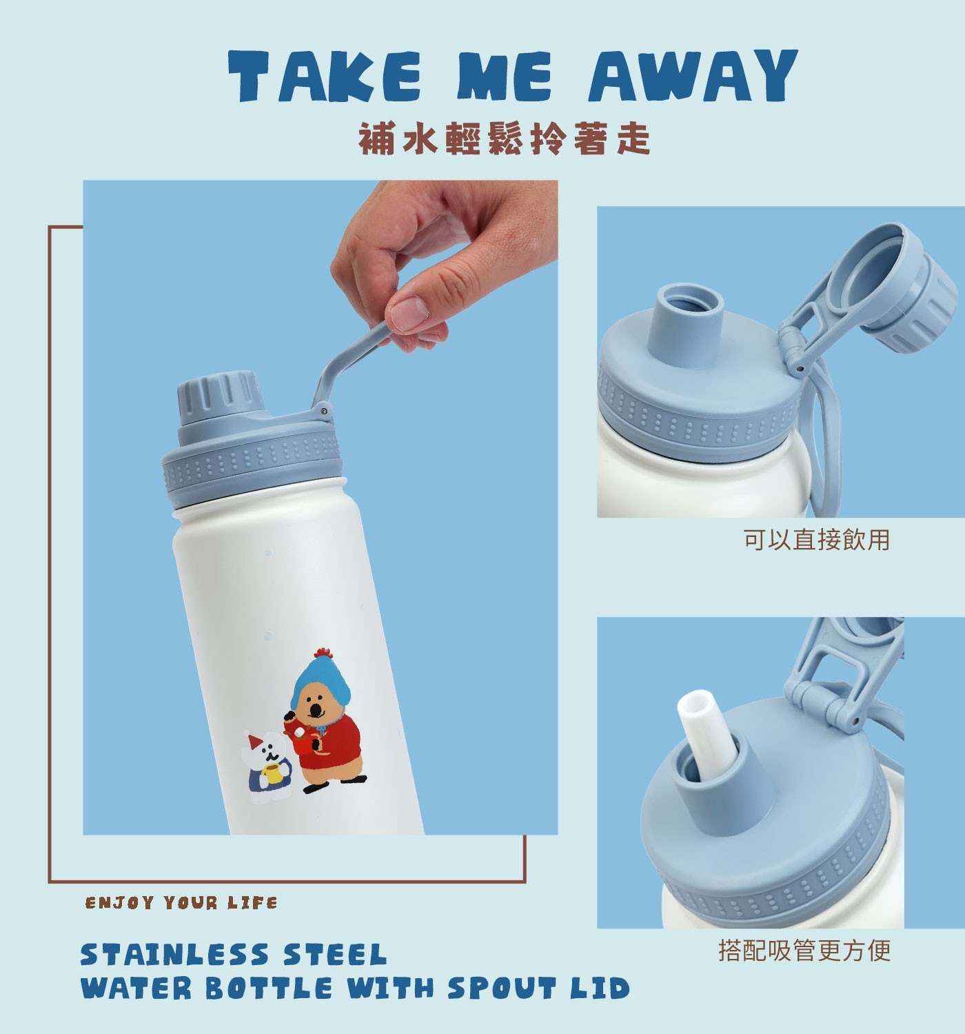 | 注意事項 | 1. 吸管不可用於熱飲。 2. 請勿放入牛奶、豆漿、乳製品及酸性果汁超過30分鐘,避免真空密閉導致食品腐壞。 3. 請勿使用於微波爐或烤箱。 4. 不建議放入洗碗機及烘碗機,避造成瓶身損壞。 5. 請勿強力碰撞,以免撞傷罐身,造成保溫不良。 6. 本產品內部如有破損或嚴重刮傷,建議更換新瓶,以保持產品安全。 7. 請勿盛裝強鹼強酸液體,恐造成不鏽鋼產生化學反應而氧化。 8. 裝滿熱液體時,請將其放在兒童接觸不到的地方。 9. 請勿使用漂白劑、含氯清潔劑、研磨清潔劑或刷具清潔。 10. 長時間使用刺激性清潔劑和熱水可能會影響瓶子的外觀。 11. 實際保溫效果會因周遭環境有所變化。 12. 供食品接觸用途。 13. 供重複使用。 |