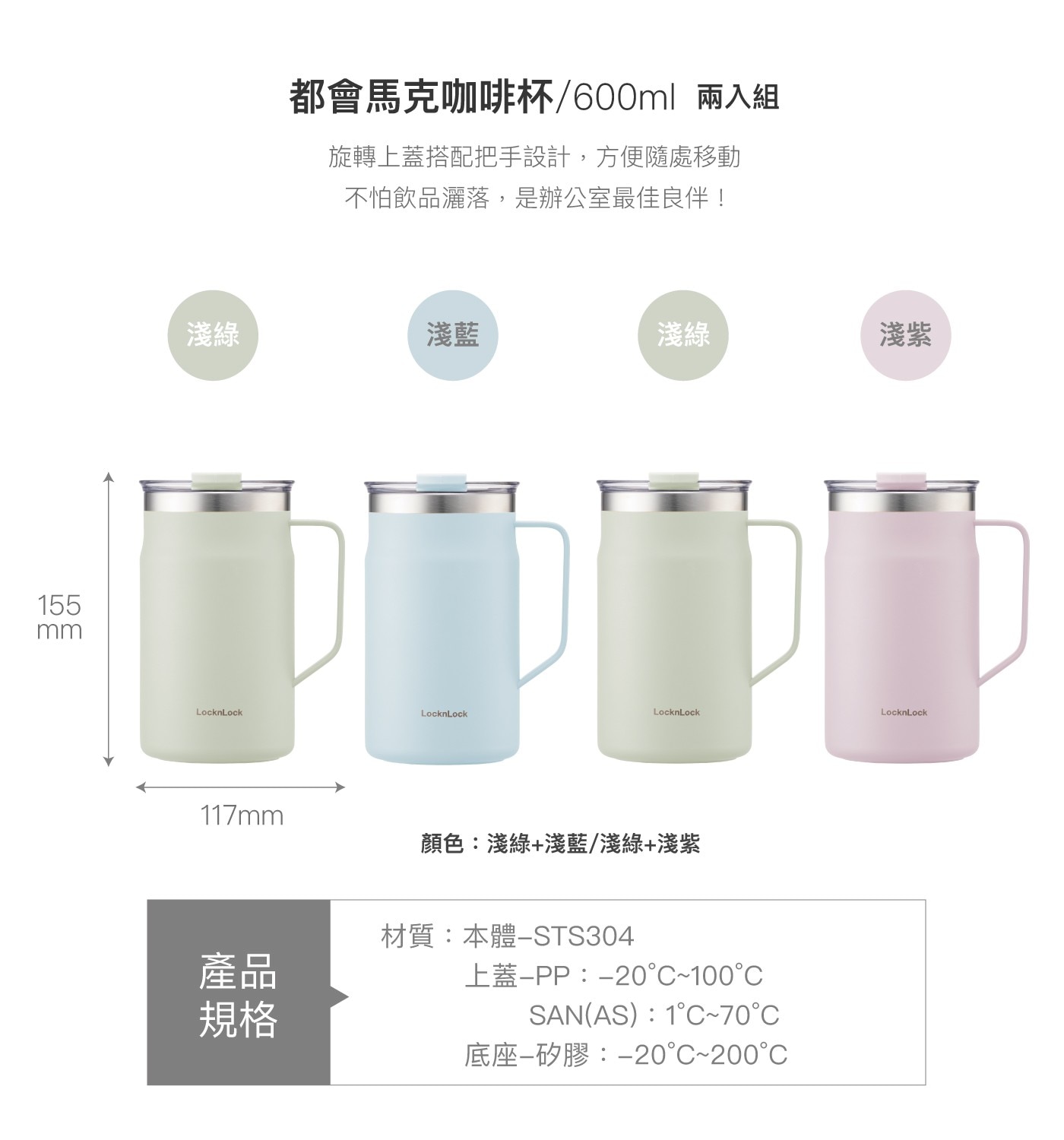 | 品名 | 樂扣樂扣 都會馬克咖啡杯 600毫升 X 2件組 |
