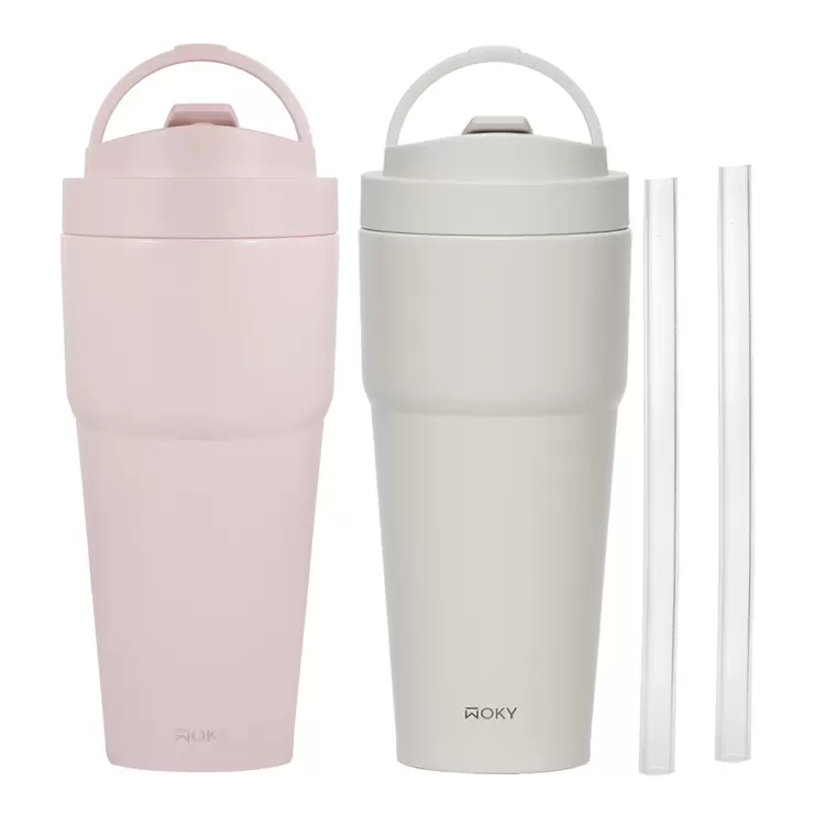 WOKY Ceramic Stainless Steel Travel Tumbler 750 ml X 2-Piece Set Pink + White
