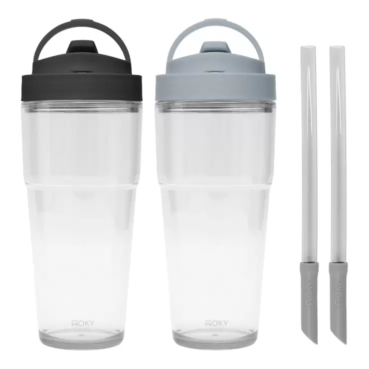 WOKY 沃廚 ECOZEN 純透渾圓隨行杯 880毫升 X 2件組 灰墨 + 绀青藍WOKY 沃廚 ECOZEN 純透渾圓隨行杯 880毫升 X 2件組 灰墨 + 绀青藍