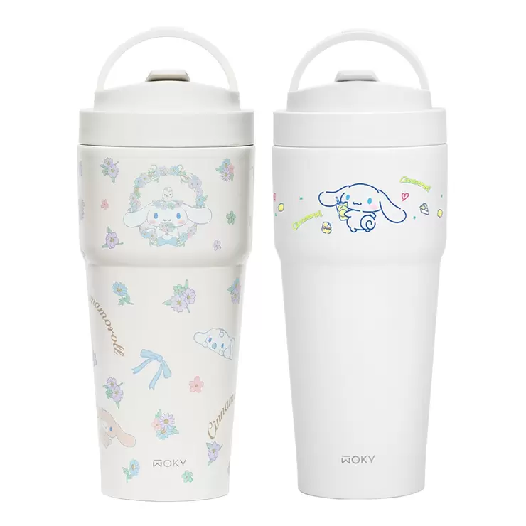 WOKY X SANRIO Ceramic Stainless Steel Travel Tumbler 750 ml X 2-Piece Set Cinnamoroll Flowers + Lemon
