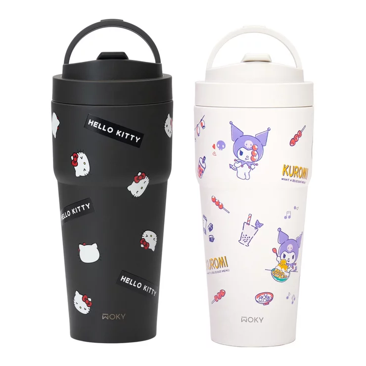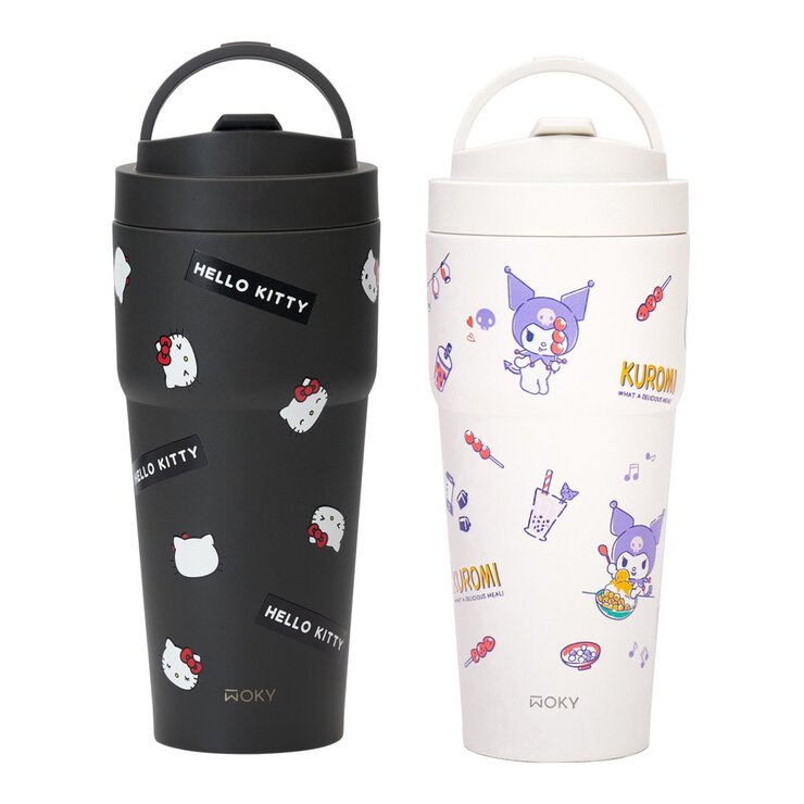 WOKY 沃廚 X 三麗鷗 渾圓杯鈦陶瓷保冷保溫杯 770毫升 X 2件組 Hello Kitty 經典黑 + 酷洛米 探索台灣味