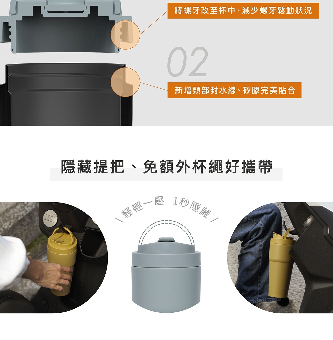 - 隱藏提手設計、免杯袋方便攜帶