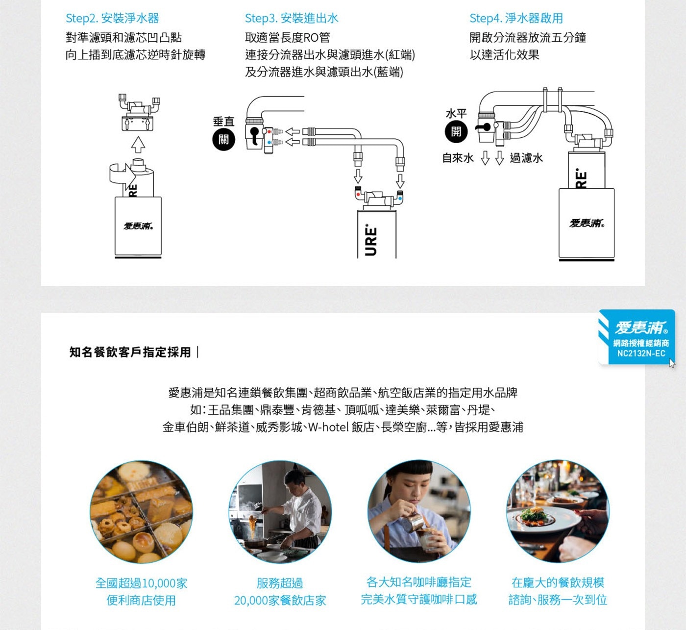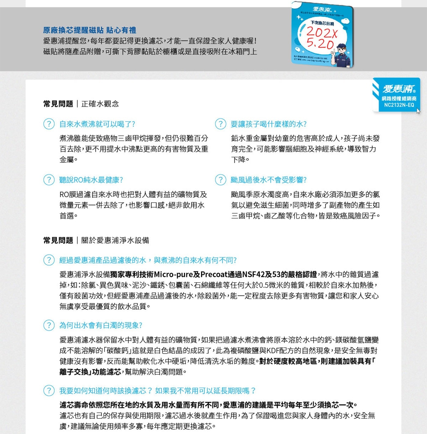 | 內容物 | 整組內附AC2濾芯 X 1、NSF認證濾頭 X 1、國家級低鉛分流器 X 1、濾芯架 X 1、 防滑墊 X 1、NSF 2米RO管 X 1 |