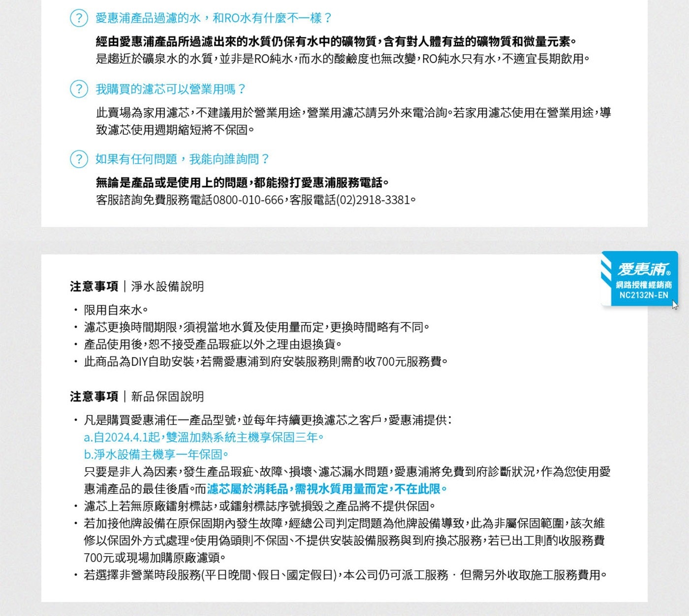 | 注意事項 | 僅適用自來水水源 |