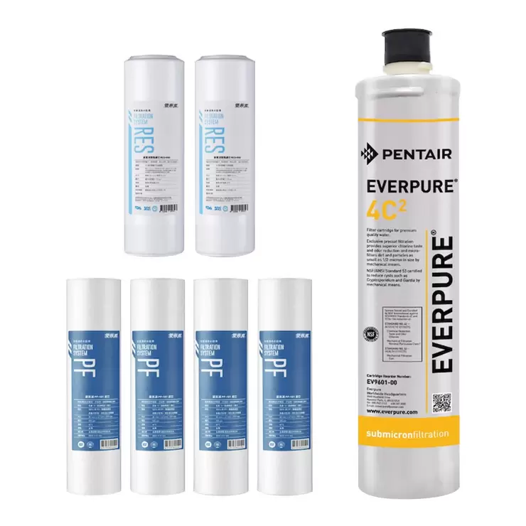 | 內容物 | 內附4C2濾芯 X 1、RES800樹酯前置濾芯 X 2、PF101高效型前置濾芯 X 4 |