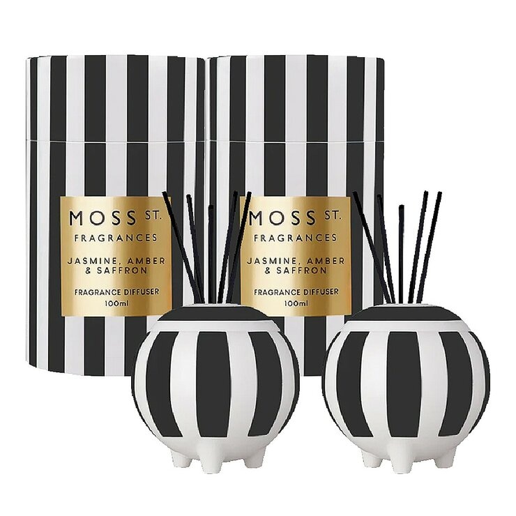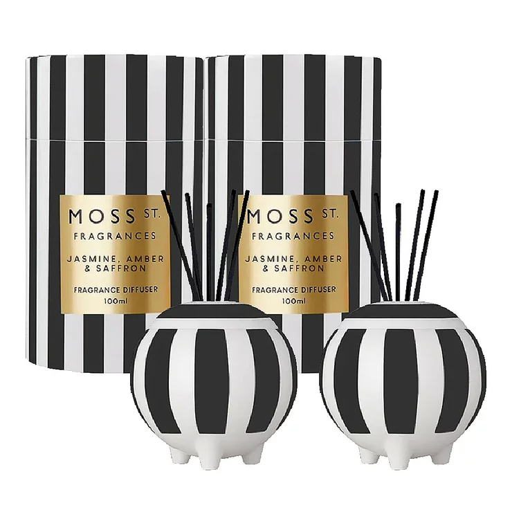 MOSS ST. FRAGRANCES Mini Ceramic Diffuser 100 ml X 2-Piece Set Jasmine, Amber & Saffron