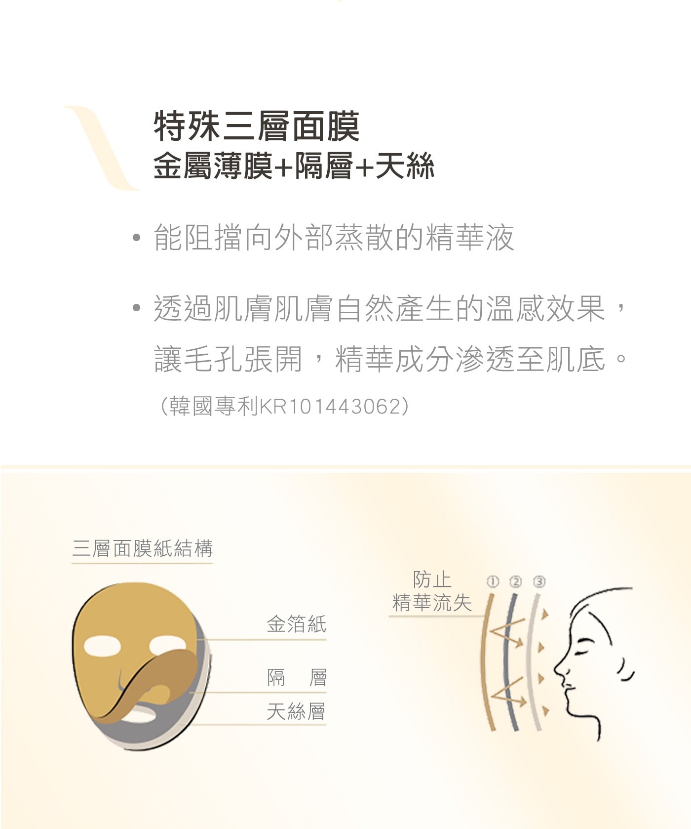 - 韓國專利三層面膜設計,緊鎖精華於肌膚
