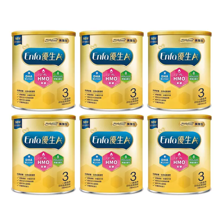 美強生 優生3 A+ 幼兒成長奶粉 HMO 400公克 X 6入 (以物流箱運送)