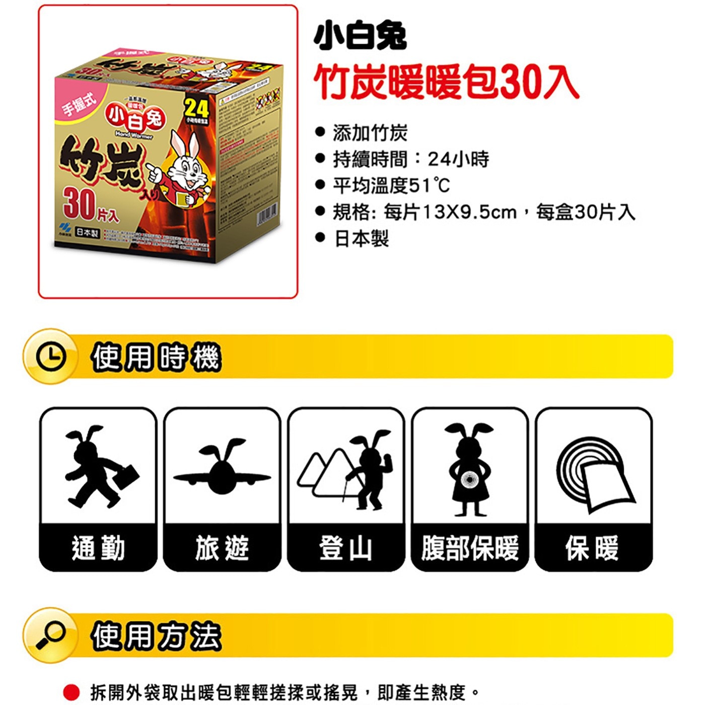 品名 | Kobayashi 小白兔 竹炭暖暖包 握式30入 |