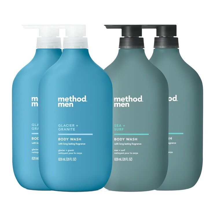 Method Men Body Wash 828 ml X 4-Pack Glacier Granite + Sea Surf