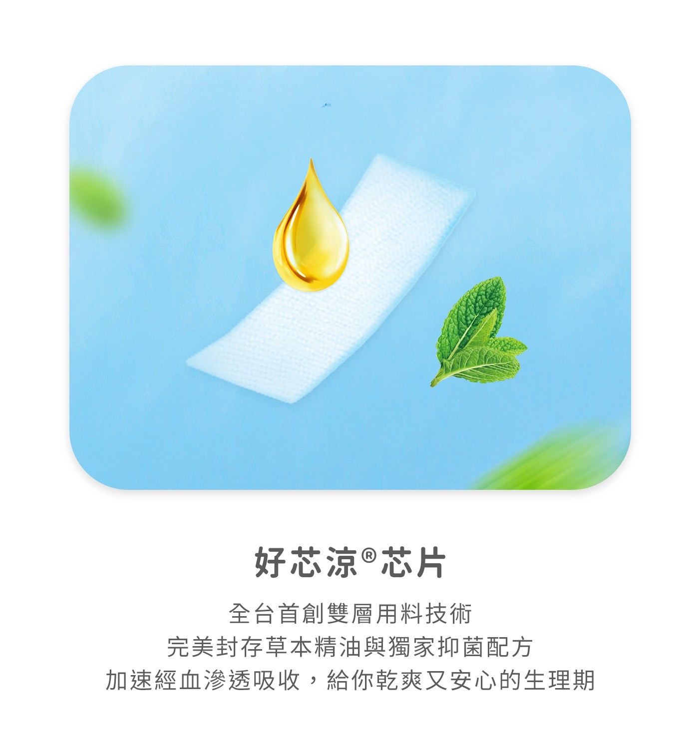 | 材質成分 | 主成分:棉柔表層、好芯涼芯片、高分子吸水聚合物、透氣底膜、不織布 配方成分:薄荷精油、茶樹精油、深海礦物元素 |