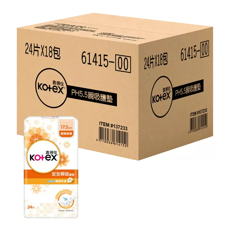 | 品名 | 靠得住pH5.5安全瞬吸護墊 17.5cm 24片x18包 |