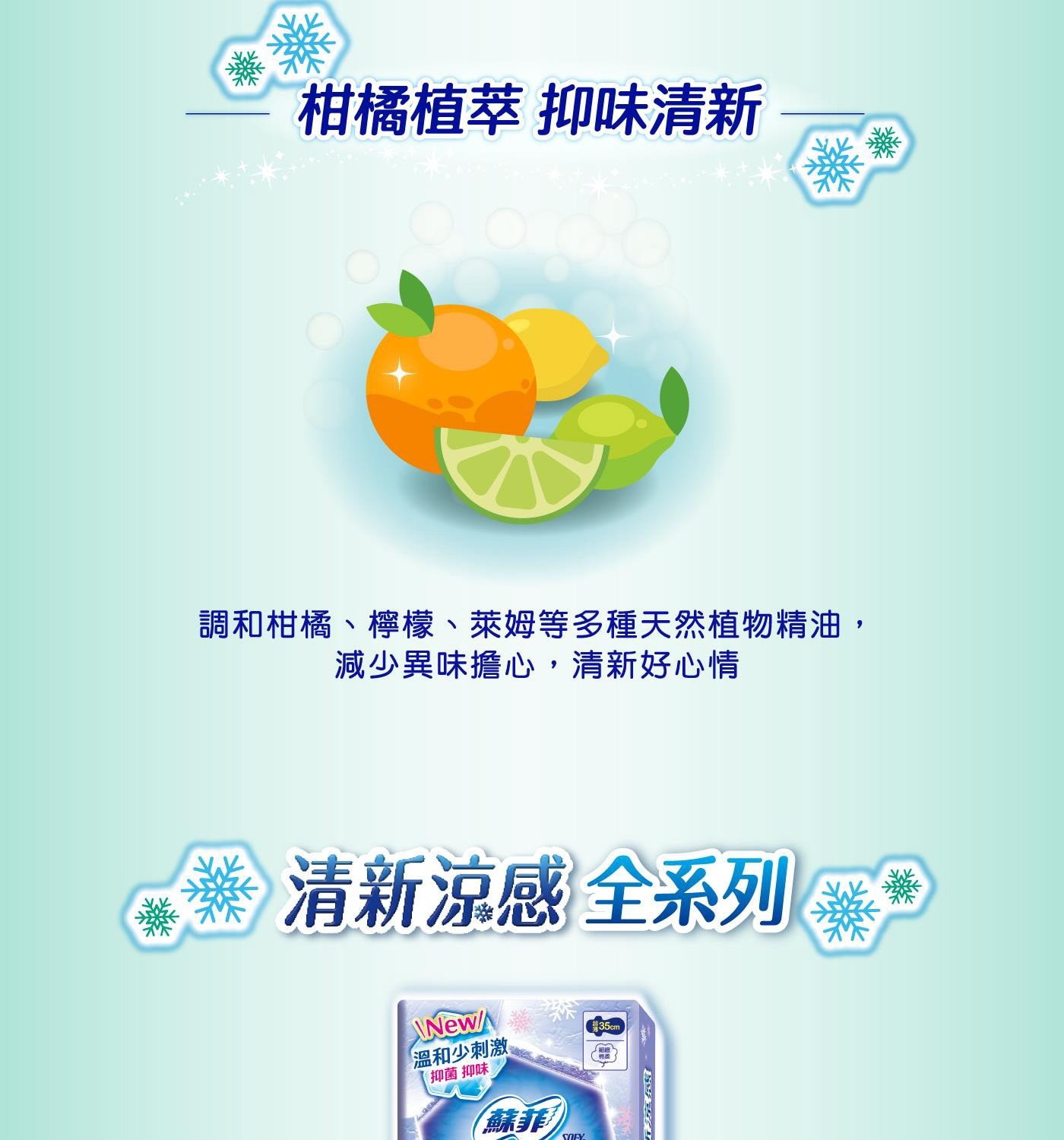 | 注意事項 | 1.生理期間,請勤於更換,以保持清潔。 2.薄荷醇過敏者應避免使用薄荷類產品。 3.使用時若出現任何異狀,請暫停使用,若仍感不適,請務必洽旬醫生。 4.使用後處理:請勿丟入馬桶內,髒污部份請向內捲付;請依照相關分類規定(可燃與不可燃等)丟棄處理。 |