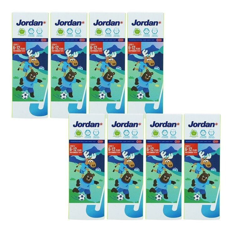 Jordan 6-12歲兒童牙膏 含氟1000ppm 青蘋果口味 75公克 X 8入Jordan 6-12歲兒童牙膏 含氟1000ppm 青蘋果口味 75公克 X 8入