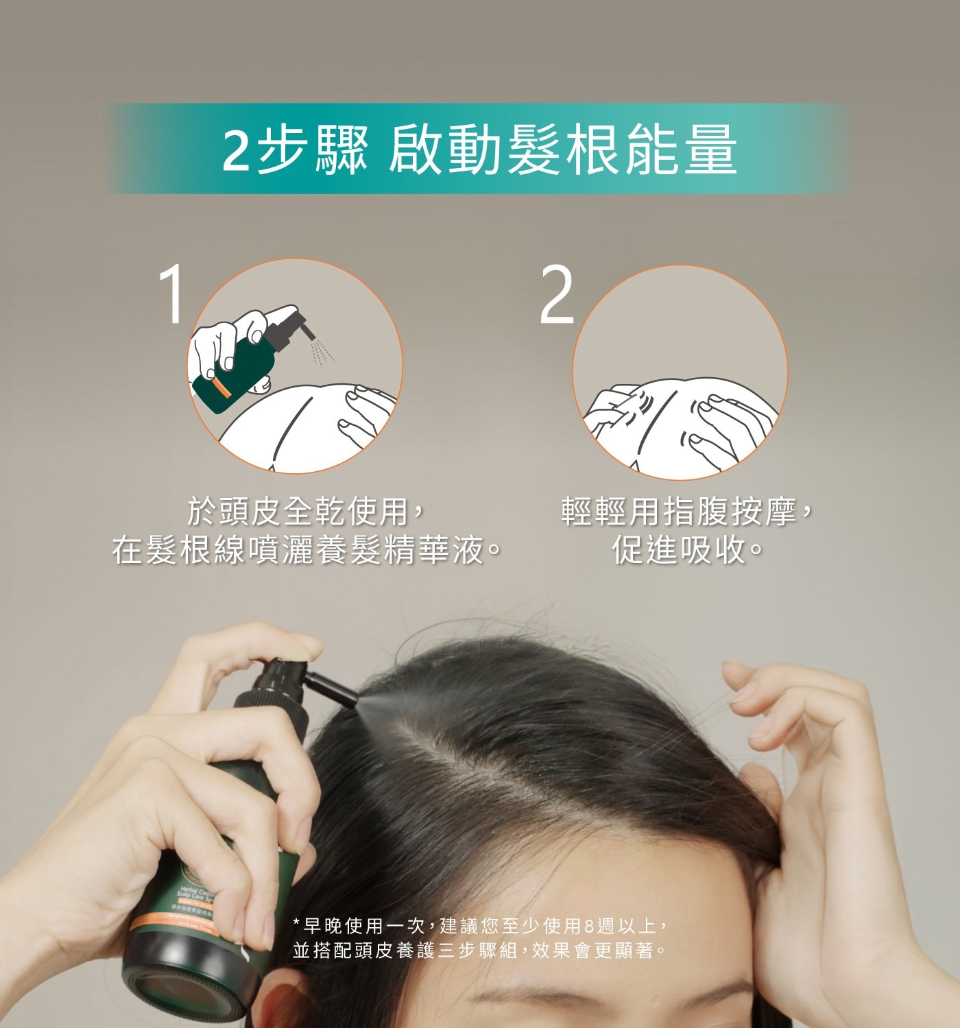 | 使用方式 | 每天早晚使用於乾髮,均勻噴灑於頭皮,輕輕用指腹按摩,促進吸收。 |