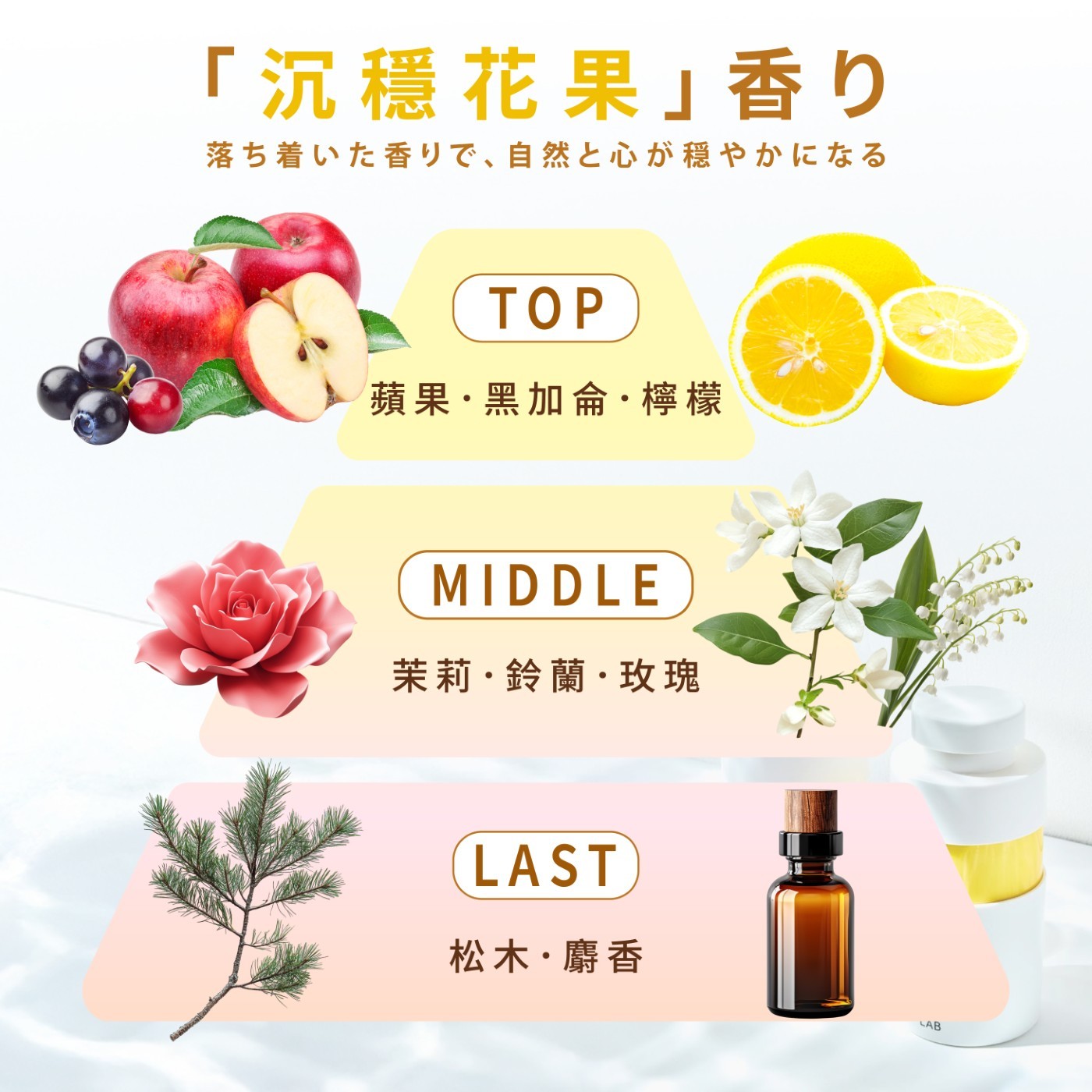 | 香味 | 黑醋栗與花香交織的高級香氛 .前調:黑醋栗、蘋果、檸檬 .中調:鈴蘭、茉莉、玫瑰 .後調:麝香、琥珀、木質調 |