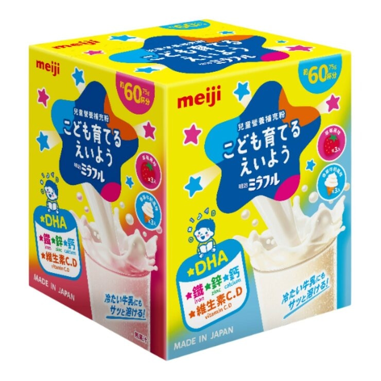 品名 : 明治 Miraful 兒童營養補充粉 75公克 X 6入 (草莓風味 X 3入 + 香草牛奶風味 X 3入)