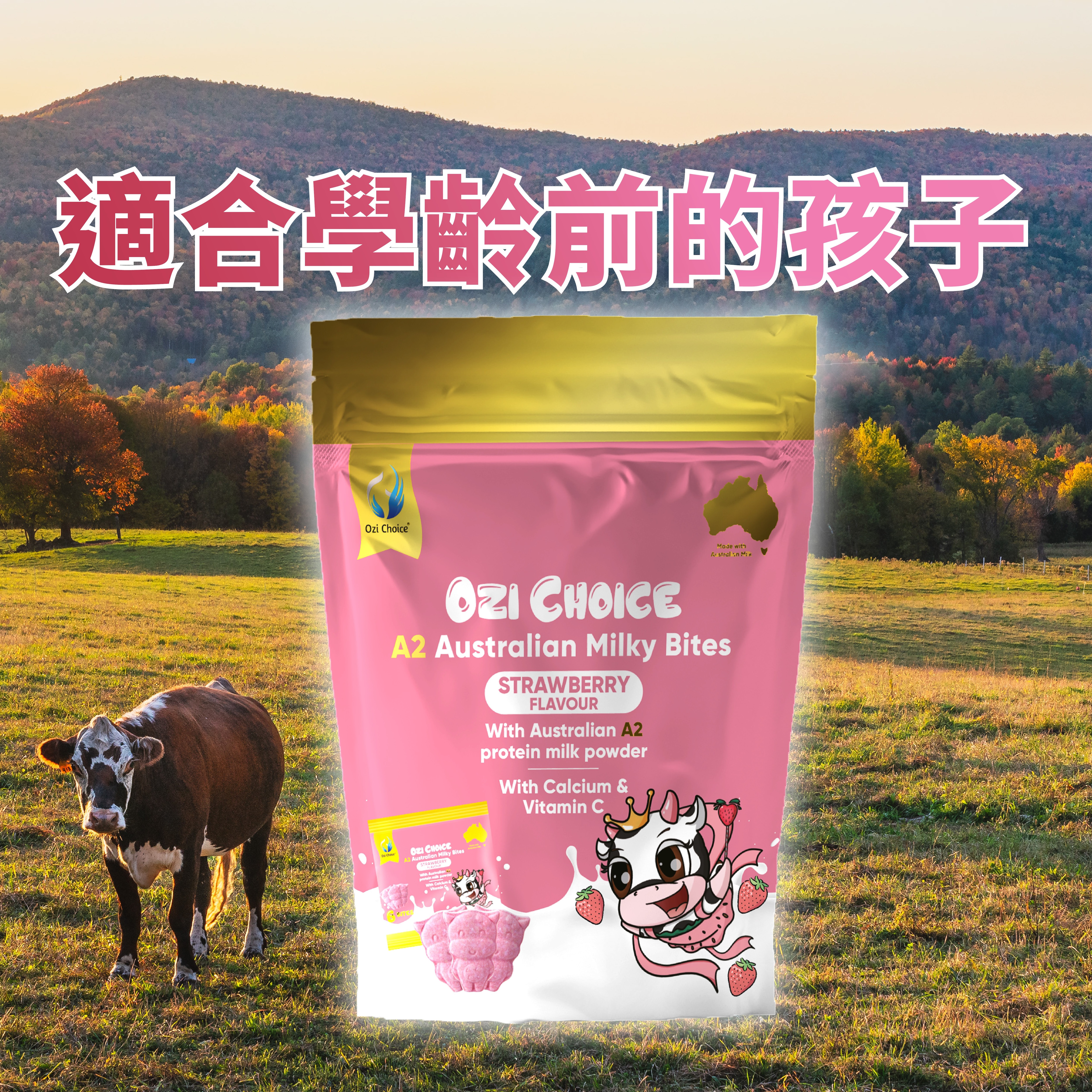 Ozi Choice A2 草莓牛奶鈣片咀嚼錠 6錠 X 48包