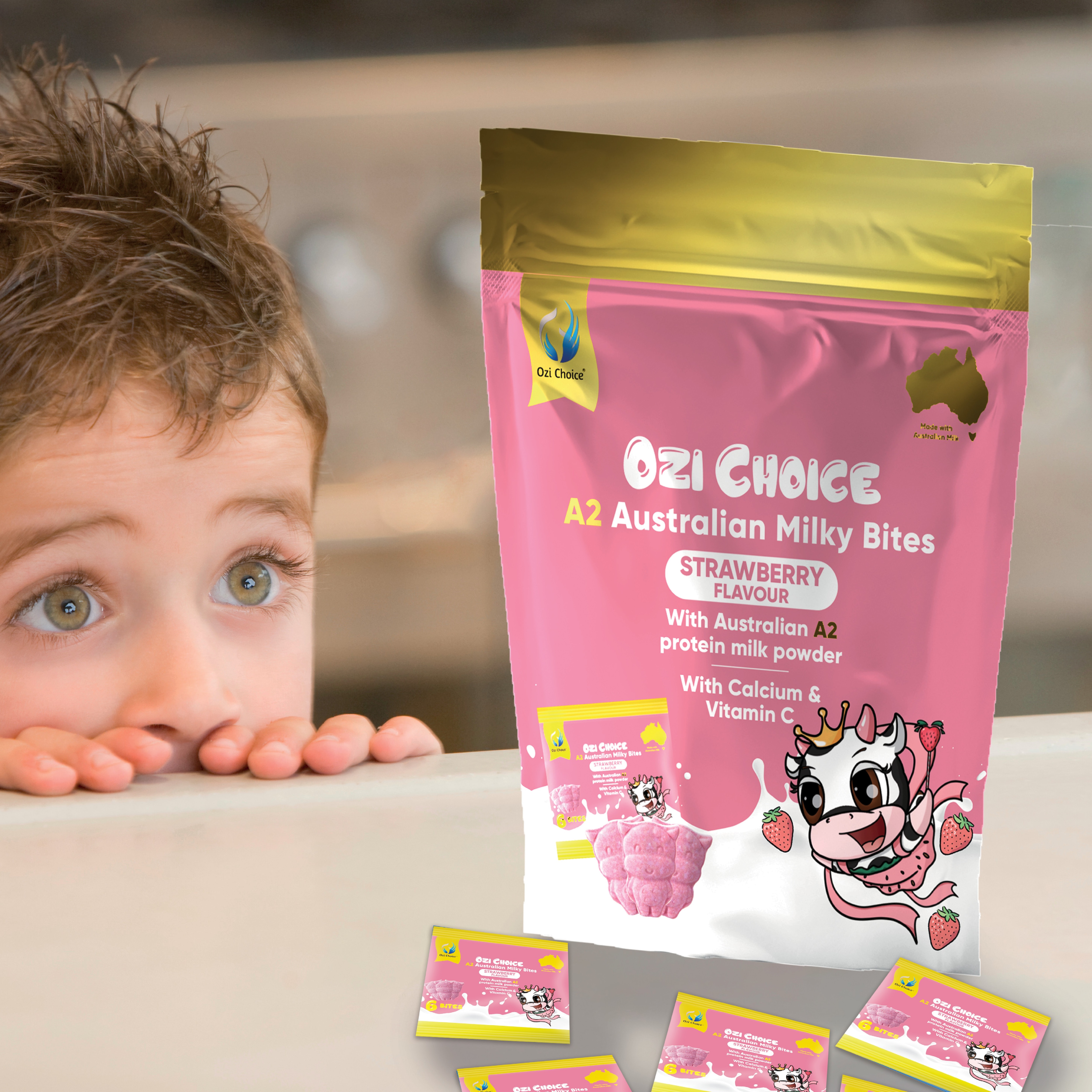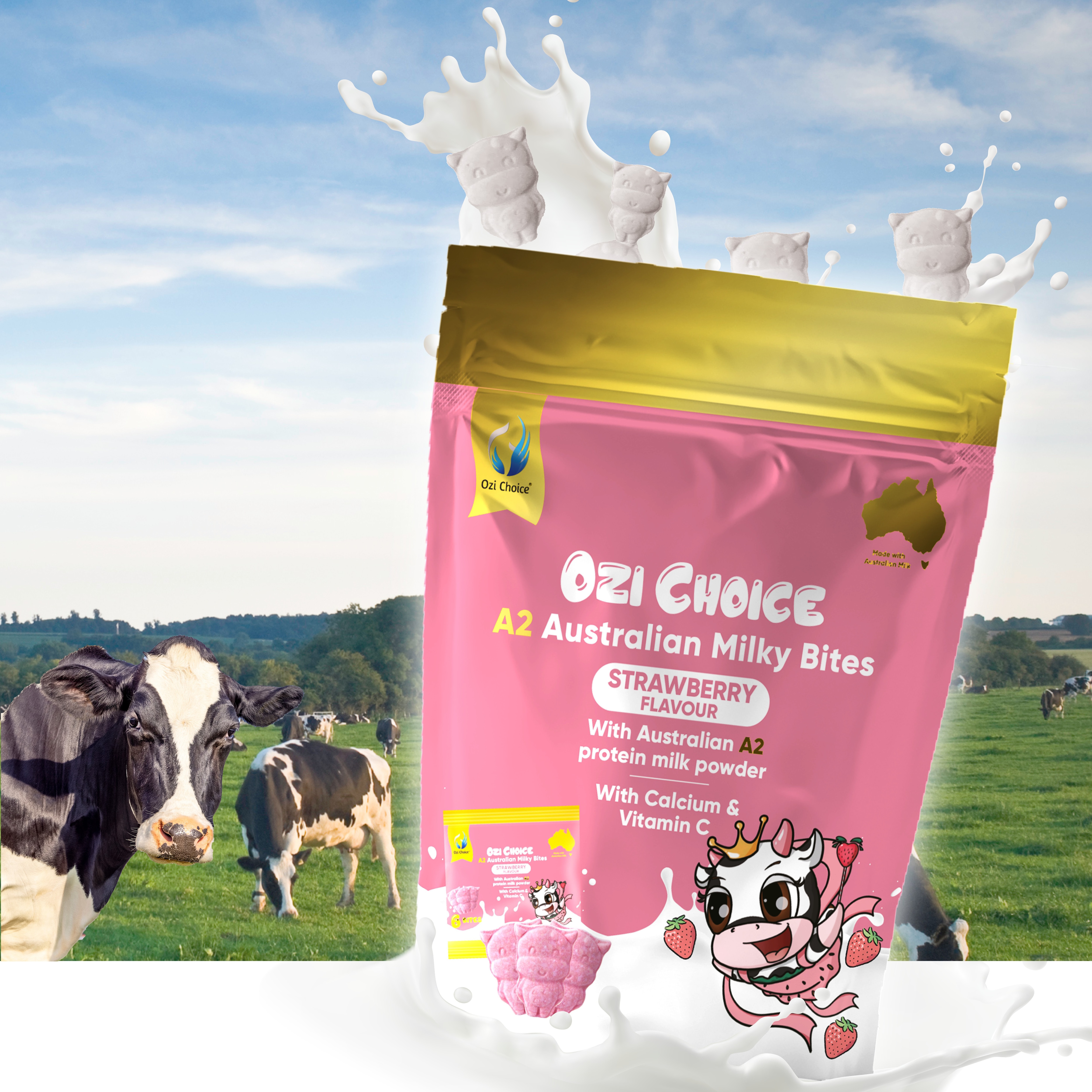 Ozi Choice A2 Australian Milky Bites Strawberry 6-Tablet X 48-Pack