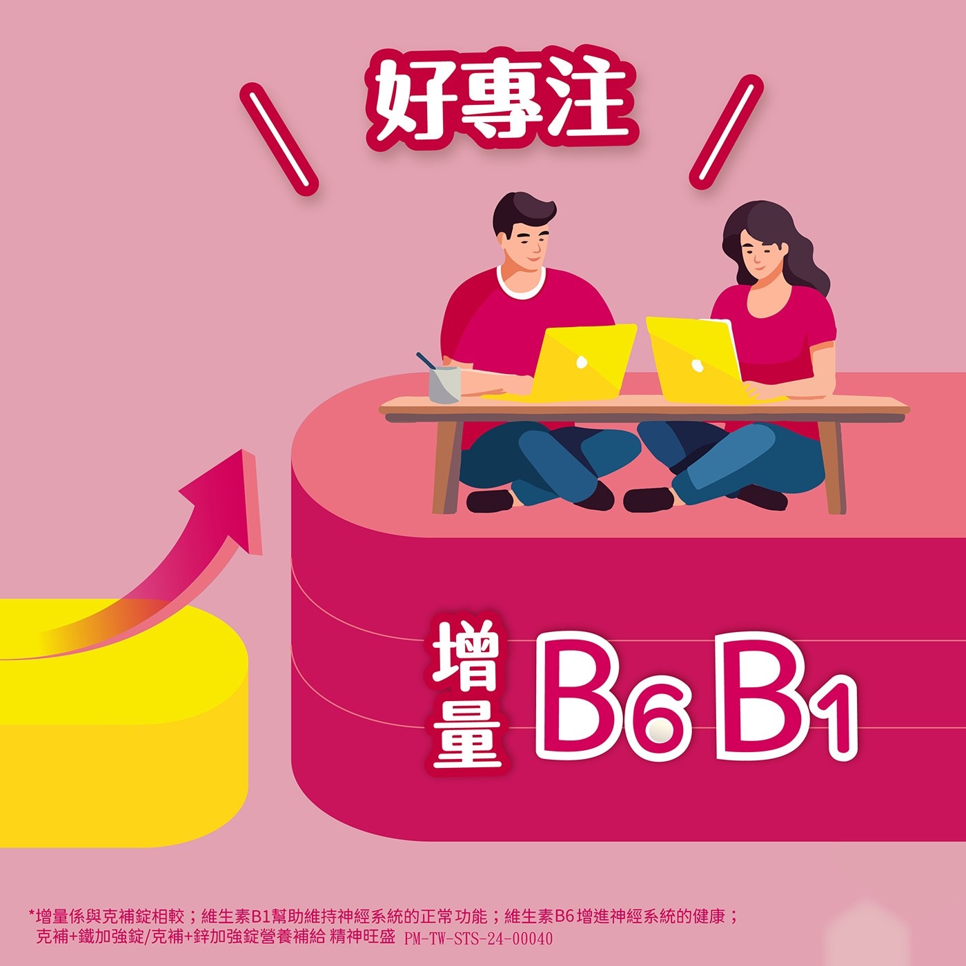 | 注意事項 | 1. 食用時可能會有尿液變黃的現象,是因為克補含有水溶性維生素B2成分,食用一定量後,會隨尿液自然排出,此為正常現象,無須掛慮。 2. 請倒至瓶蓋上再取用,避免水氣沾染其他錠劑,開啟食用後,請即拴緊。 3. 請置於陰涼乾燥及兒童無法取得之處。 4. 如同食用其他營養補充食品,孕婦及授乳婦在食用本產品前,請洽詢醫藥專業人員。 5. 本產品含有大豆卵磷脂。 |