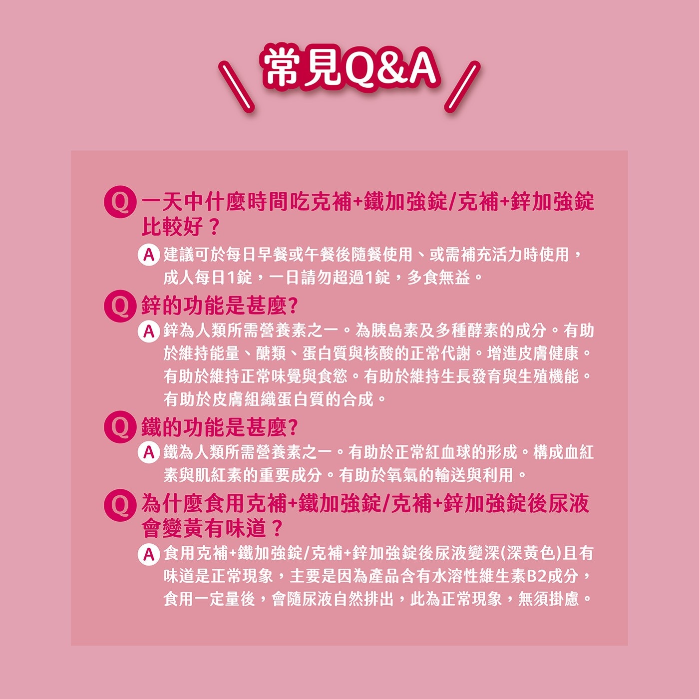 1. 食用時可能會有尿液變黃的現象,是因為克補含有水溶性維生素B2成分,食用一定量後,會隨尿液自然排出,此為正常現象,無須掛慮。