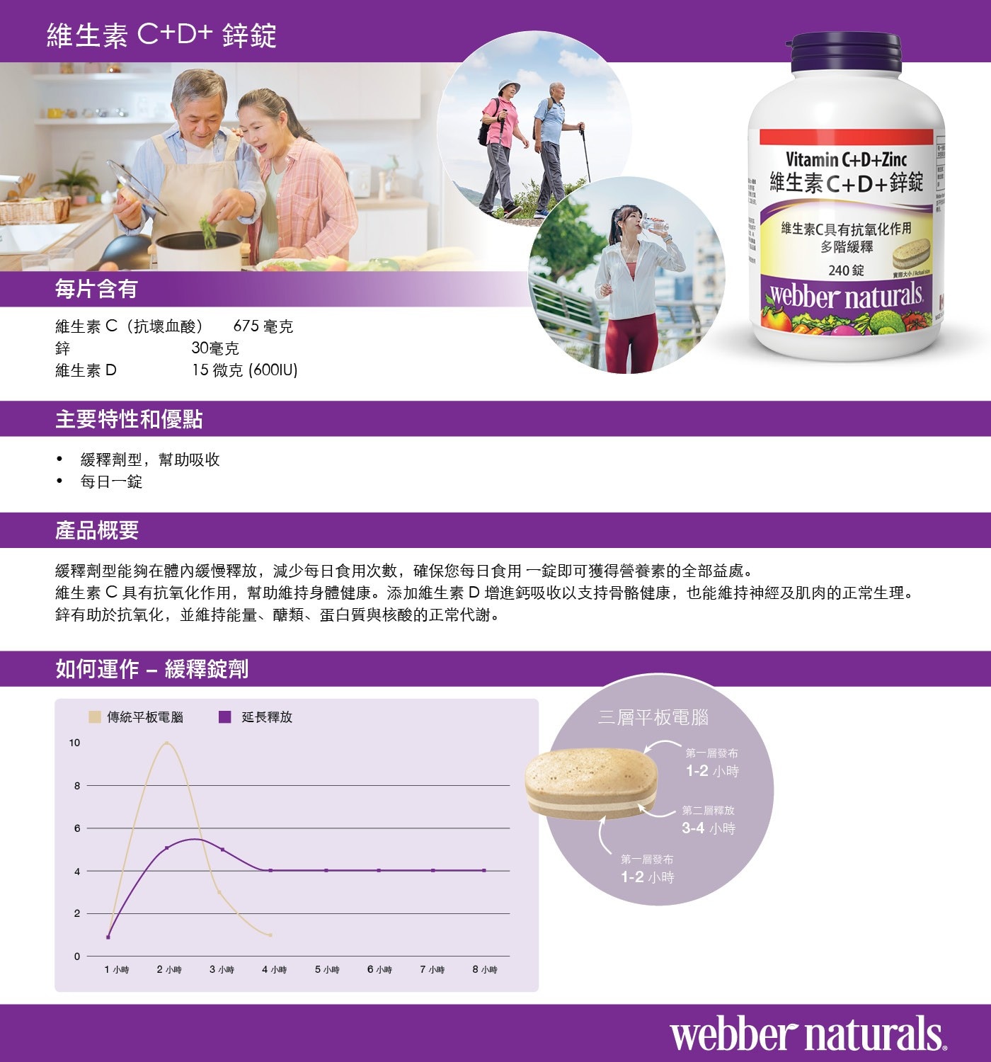 品名 : Webber Naturals 維生素 C + D + 鋅錠 240錠