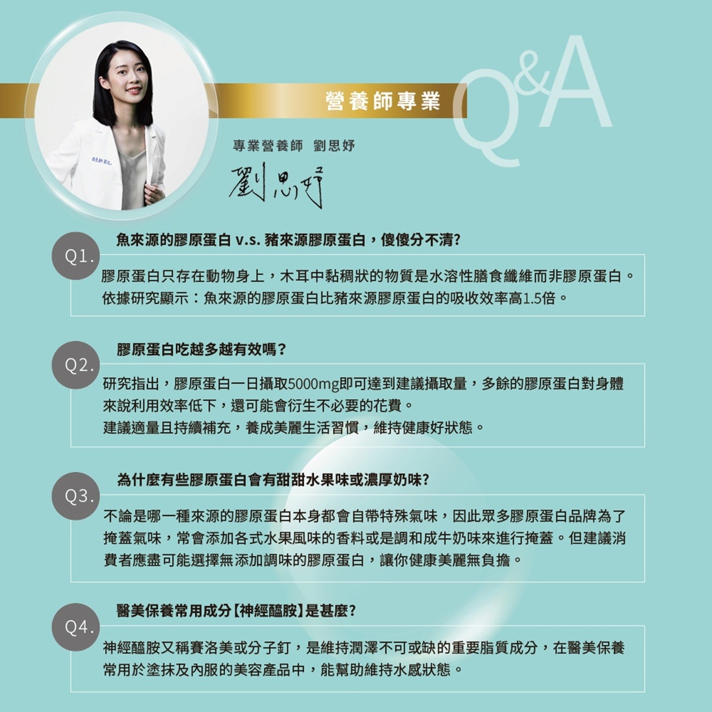 | 注意事項 | 膠原蛋白粉加入飲料後請儘速飲用完畢,並依照個人體質酌量攝取膠原蛋白量。 過敏原資訊:本產品含有魚、大豆、奶類及其製品。 |