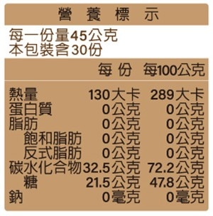 | 內容量/入數 | 45公克 X 30入 |