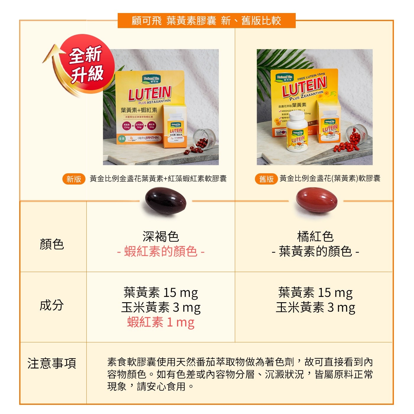 - 全素可食,100%專利游離態葉黃素