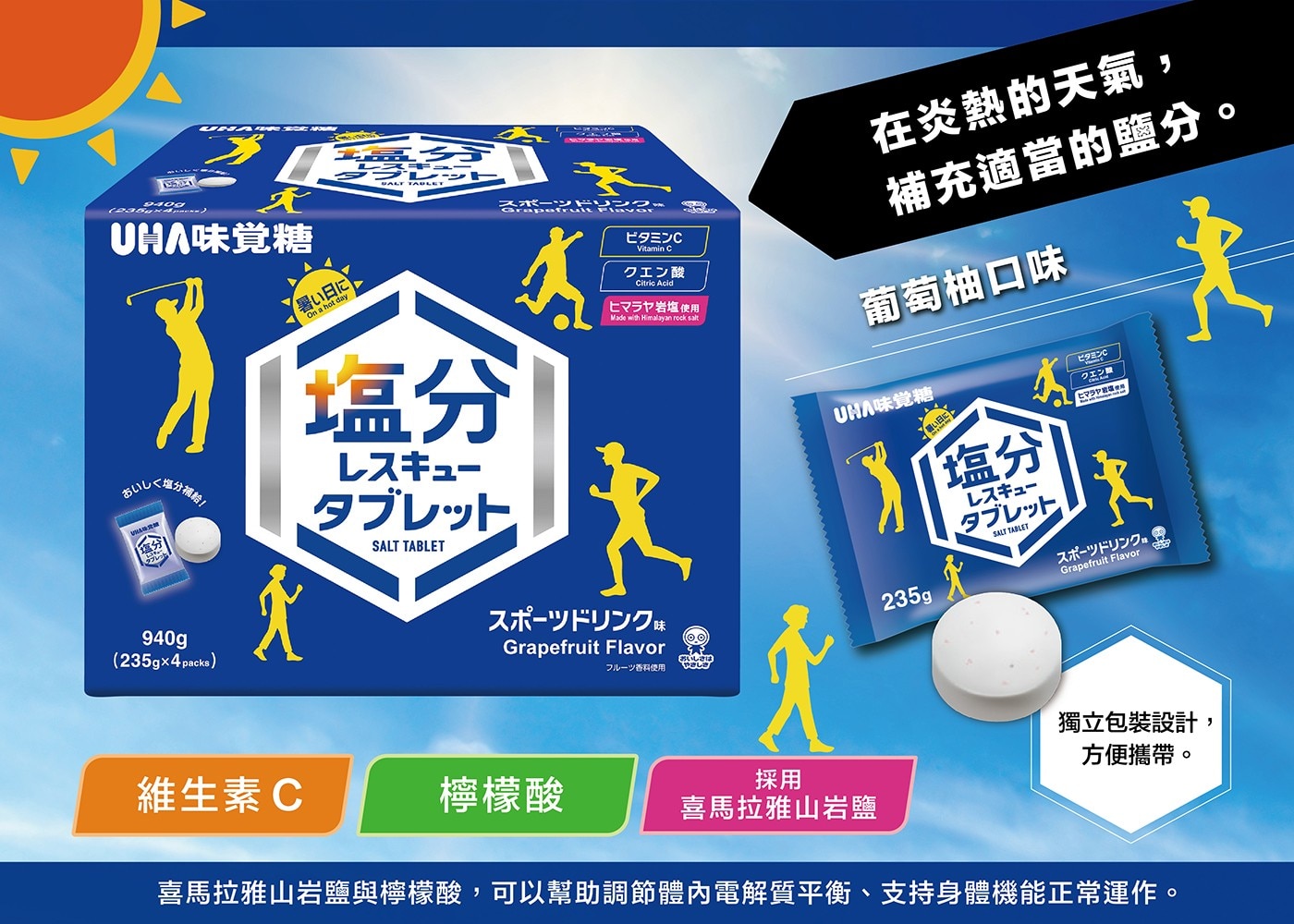 • UHA鹽補給嚼錠為一款能夠輕鬆並隨時補充鹽分的錠狀食品。