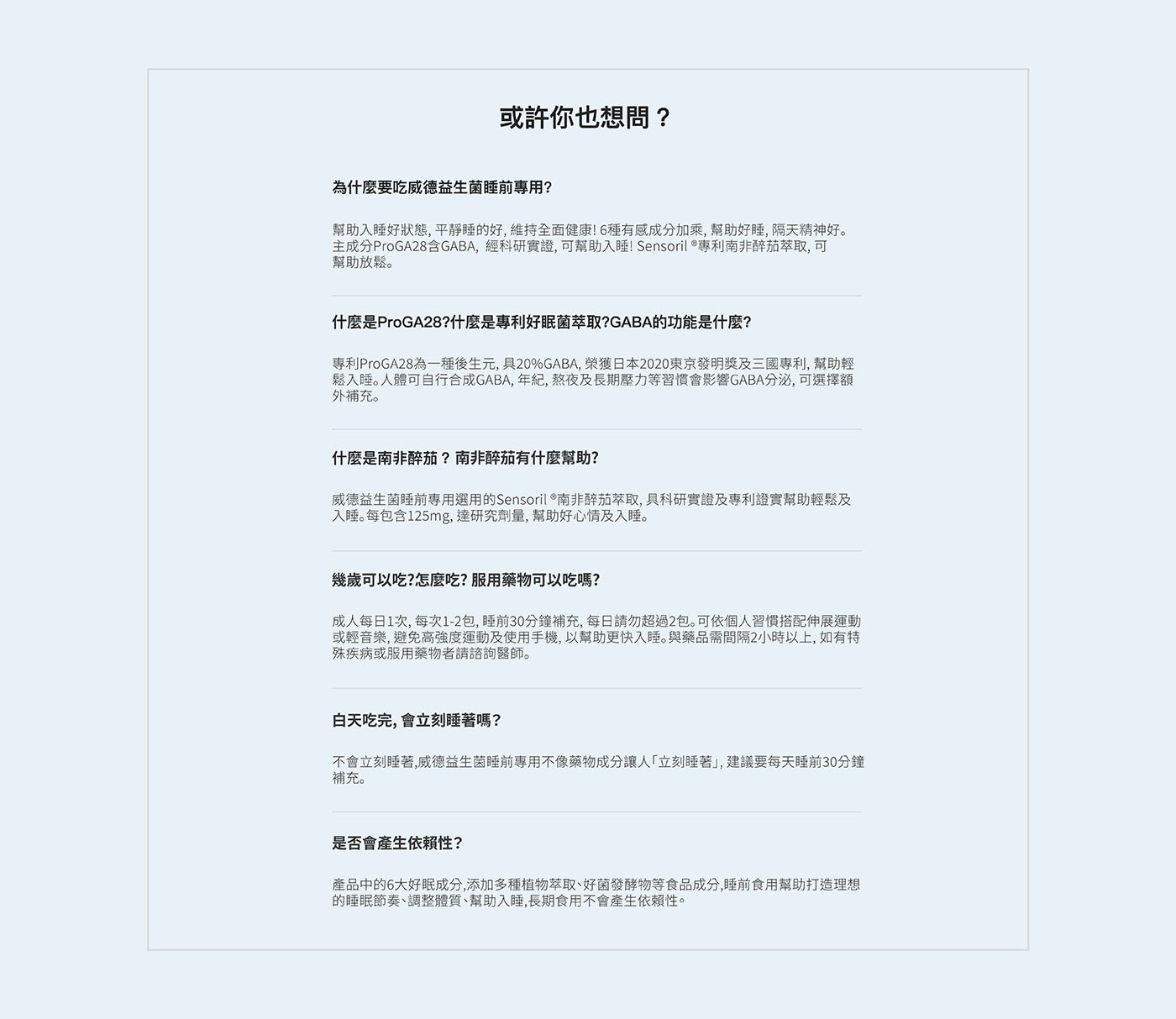 適應症 | 失眠、不易入睡、半夜易醒來、睡眠品質差、焦慮壓力大者。 |