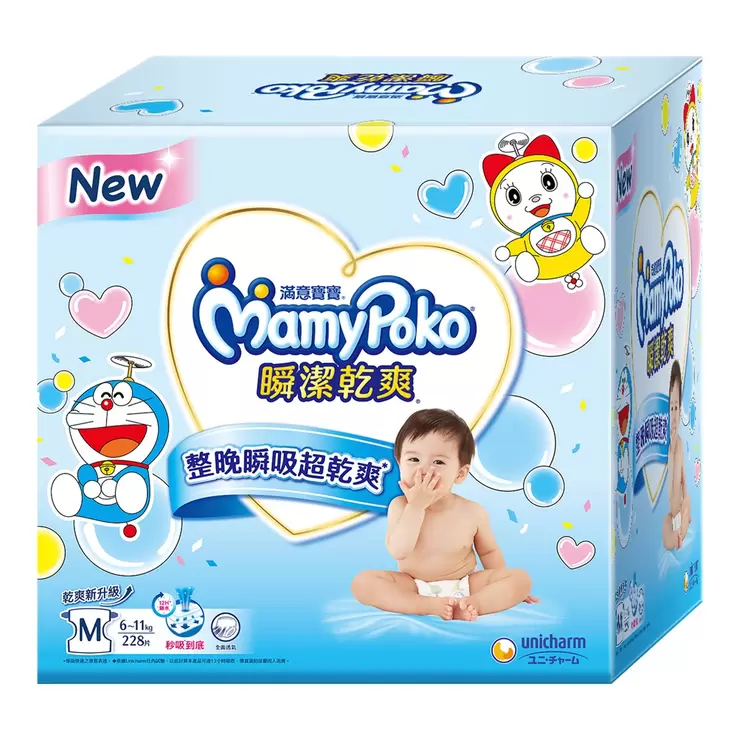| 品名 | 滿意寶寶 瞬潔乾爽 哆啦A夢紙尿褲 M號 228片 |