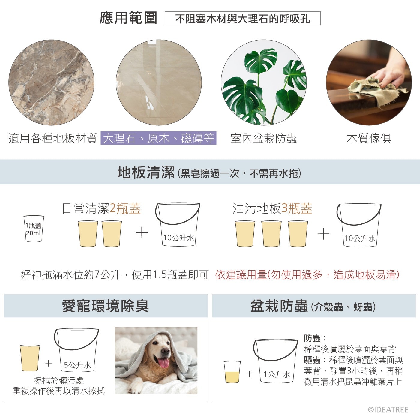 | 注意事項 | 1.請置於兒童與寵物無法觸及之處,避免誤食或誤用。 2.若不慎接觸眼睛或皮膚,請立即以大量清水沖洗。 3.本產品僅供外用,請勿食用或吸入。 4.請參考用量,請勿使用過量,避免地板滑。 5.若產品為天然成分製成,若出現輕微沉澱、顏色變化屬正常現象,不影響品質。 |