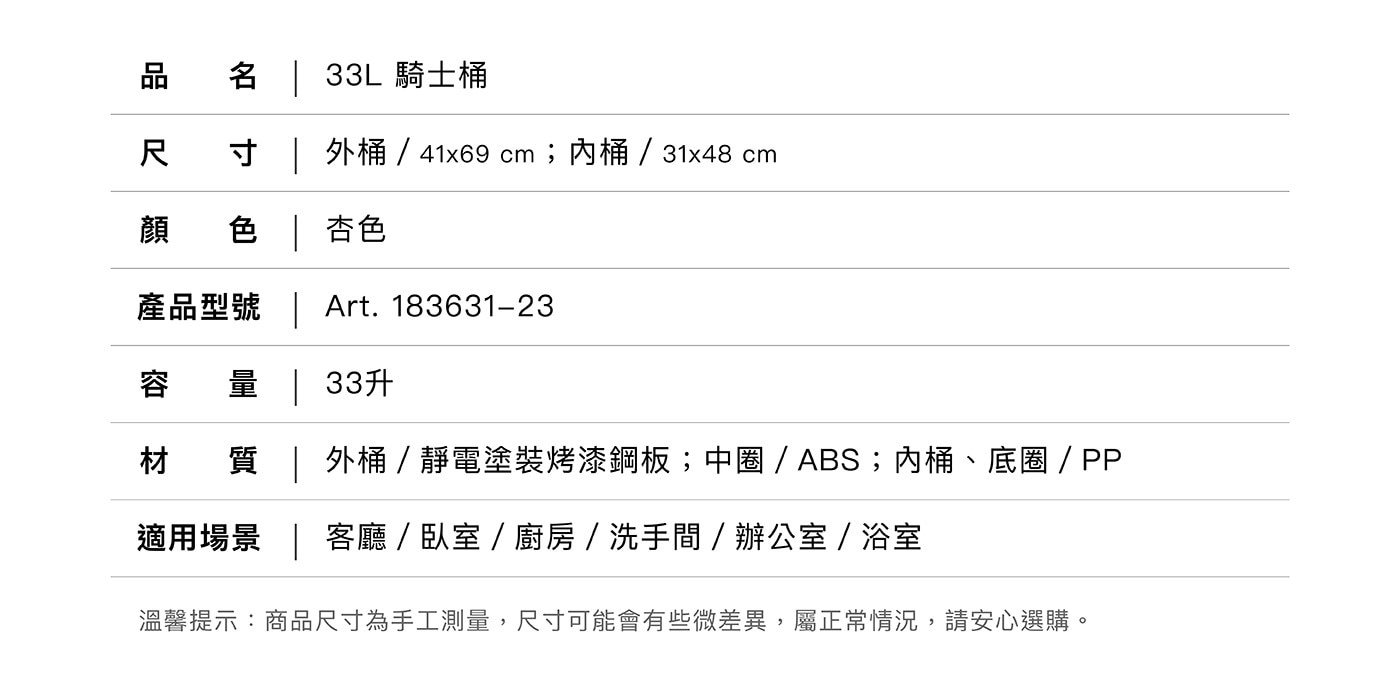 | 品名 | WESCO 威士克 騎士桶 33公升 杏色 |