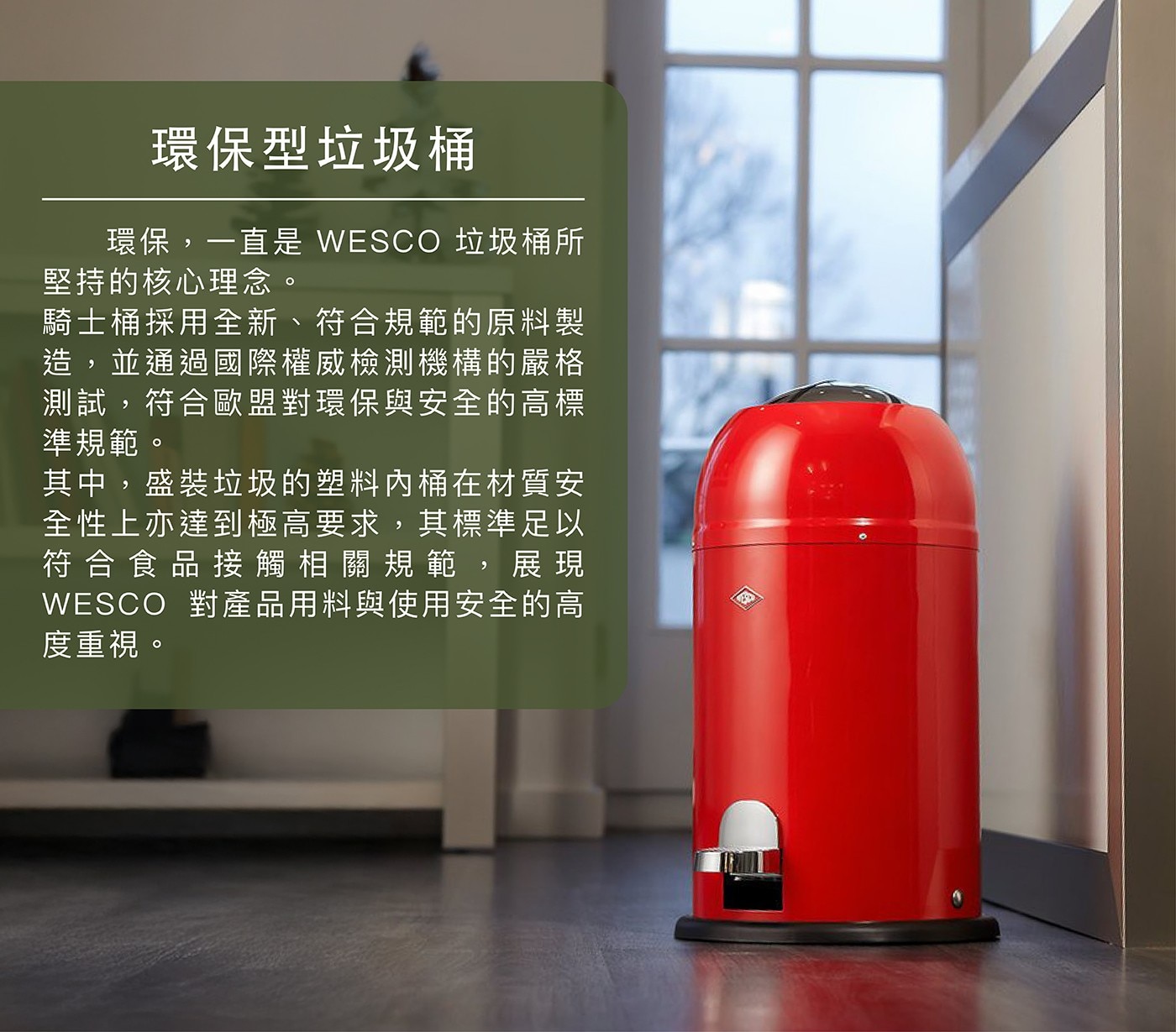 - 桶身提供多款現代化時尚繽紛色彩,搭配最高品質的靜電粉末烤漆,色澤細膩耐看,展現德國家用品一貫的設計品味。