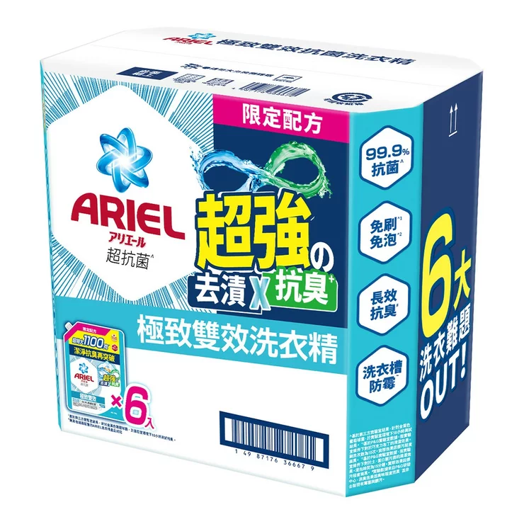 | 品名 | Ariel 雙效洗衣精補充包 1100公克 X 6 入 |