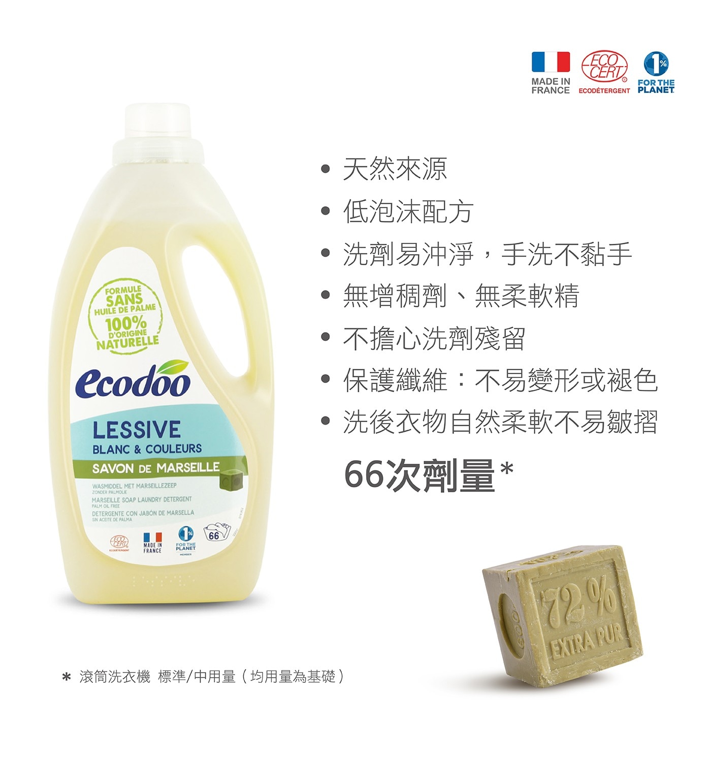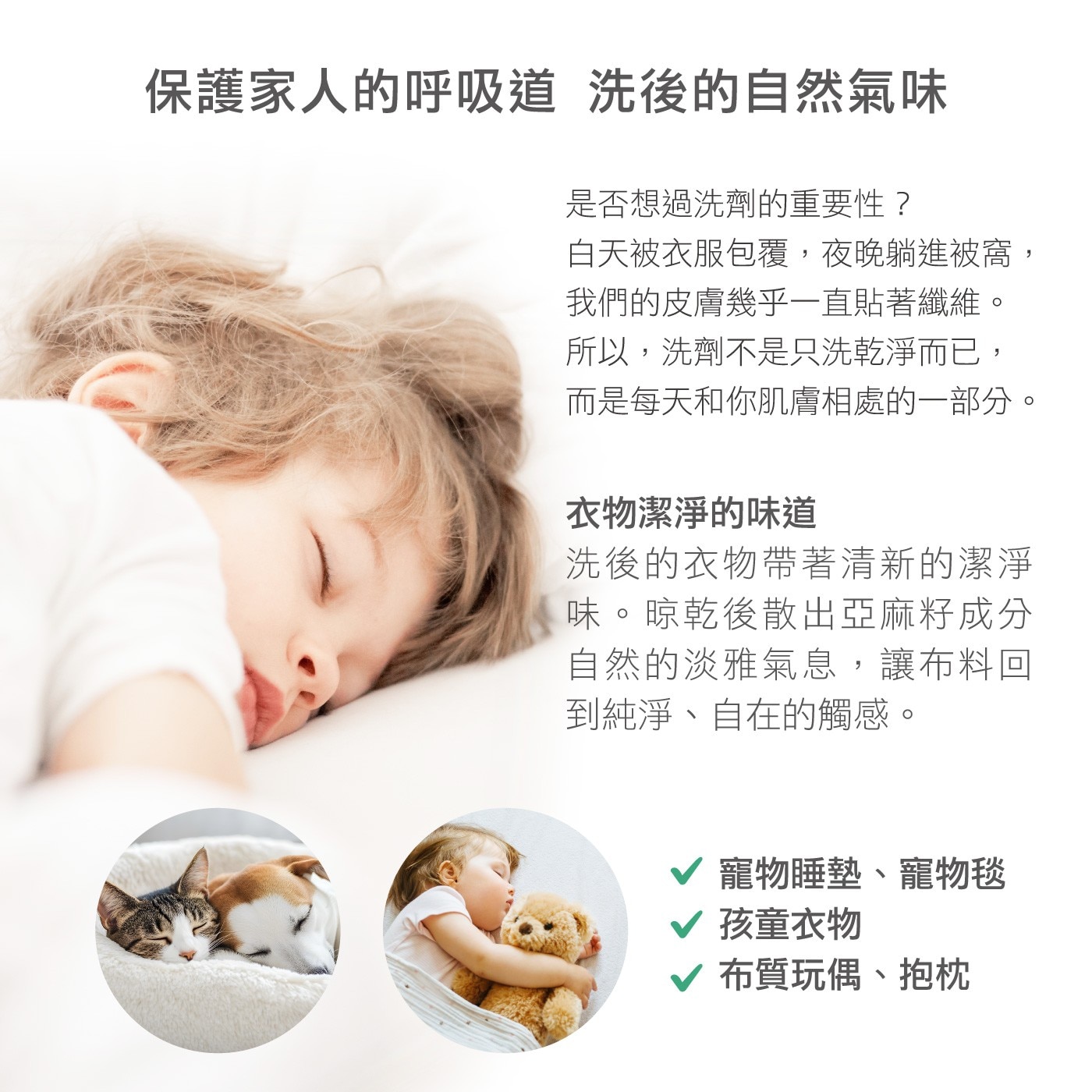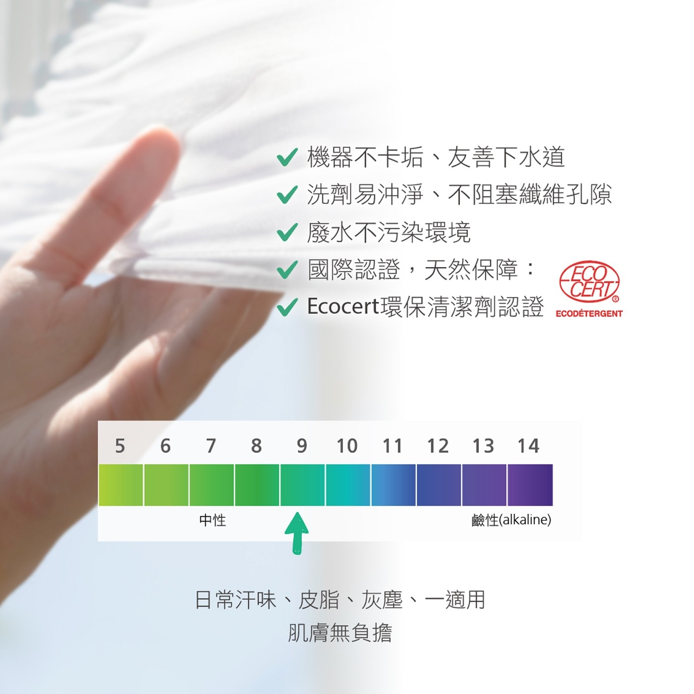 | 注意事項 | 1.本產品為植物性清潔配方,可生物分解、環境友善。 2.不含磷、螢光劑、人工香料與色素,敏感膚質與嬰幼兒衣物皆可安心使用。 3.請置於兒童與寵物無法觸及之處,避免誤食或誤用。 4.請依照衣物洗滌標示使用。 5.請勿與漂白水混合使用,避免產生刺激性氣體。 6.請置於陰涼乾燥處,避免陽光直射及高溫環境。 7.使用前請先搖勻,確保天然成分均勻分布。 8.開封後請儘早使用完畢,確保最佳品質與效果。 9.天然配方可能因溫度變化出現輕微沉澱或顏色變化,屬正常現象,不影響使用。 |