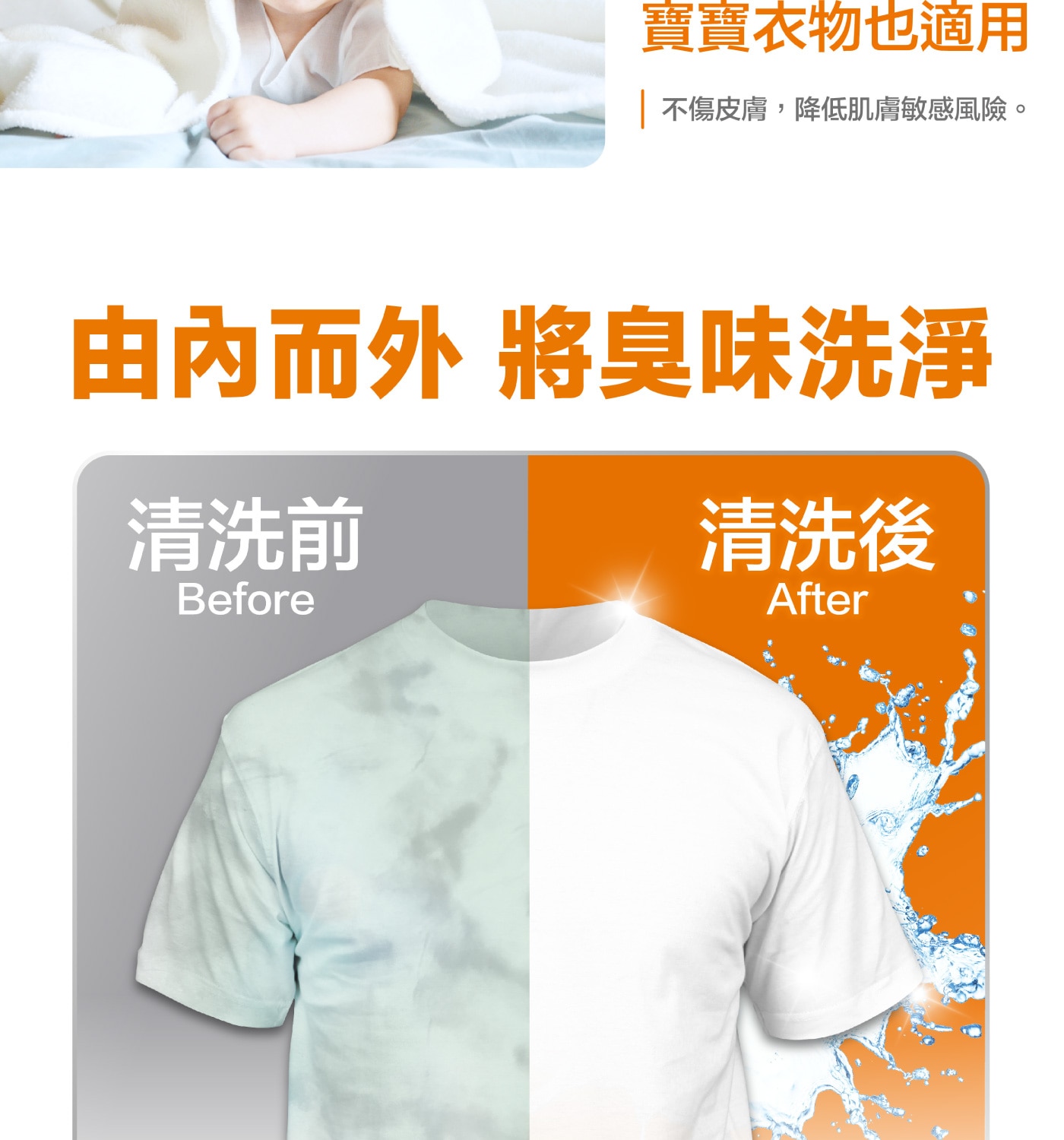| 成分 | 天然食品級橘油、棕櫚油系界面活性劑(Surfactant)、蛋白潔淨酵素、澱粉潔淨酵素、油脂潔淨酵素、天然發酵制菌因子、源自β-胡蘿蔔素除臭因子 |