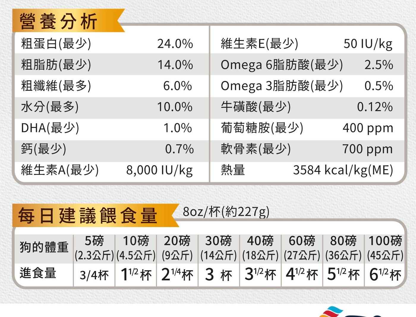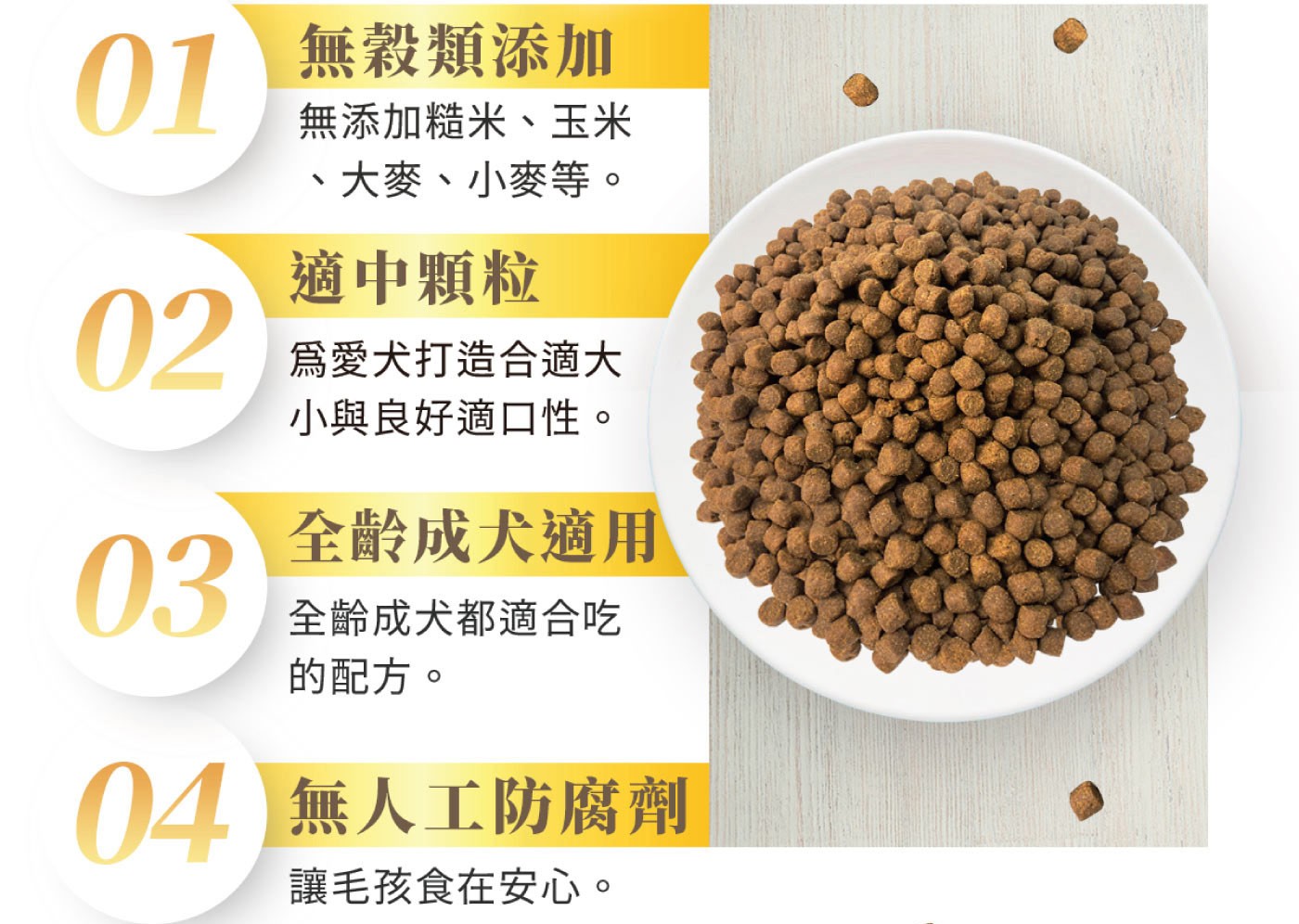 | 商品用途 | 餵養犬隻 (全齡成犬適用) |