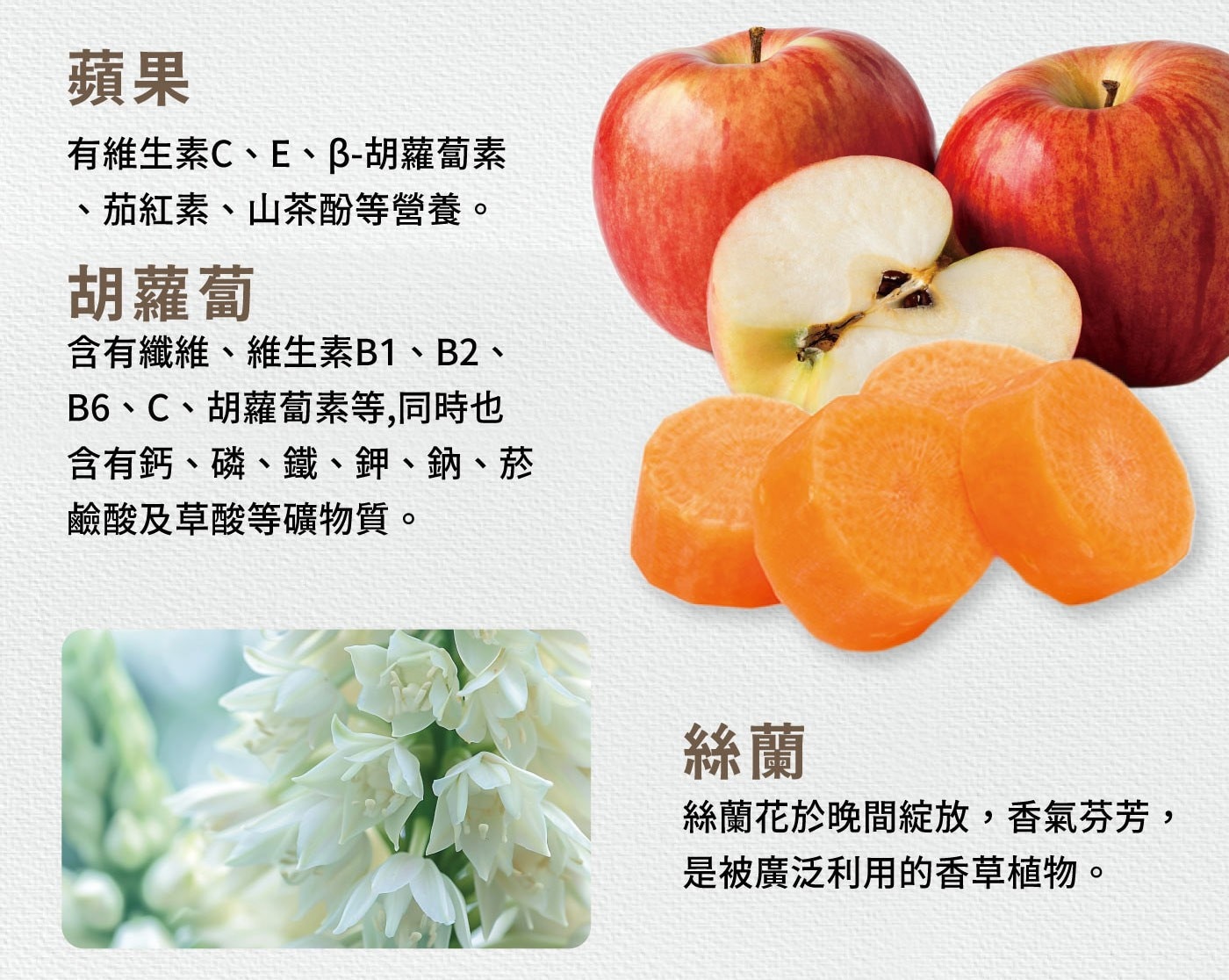 | 主成分 | 去骨雞肉,雞肉茸(葡萄糖胺和硫酸軟骨素來源),木薯澱粉,地瓜,豌豆,豌豆澱粉,雞脂肪(混合保存生育酚),甜菜漿,亞麻籽,胡蘿蔔乾,蔓越莓乾,火雞肉茸,天然雞肉香料,磷酸氫鈣,絲蘭萃取物,菊苣根,魚油,藍莓乾,鱷梨,蘋果乾,香芹,木瓜,菠菜,羽衣甘藍粉,牛磺酸,甲硫胺酸,礦物質(硫酸鋅,硫酸亞鐵,硫酸銅,硫酸鎂,碘酸鈣,亞硒酸鈉,胺基酸鐵螯合物,鋅胺基酸螯合物,錳胺基酸螯合物,銅胺基酸螯合物),維生素(維生素E補充劑,氯化膽鹼,維生素A補充劑,維生素D3補充劑,菸酸,泛酸鈣,鹽酸?哆醇(維生素B6來源),核黃素補充劑,葉酸,生物素,維生素B12補充劑),乾嗜酸乳桿菌發酵物,乾植物乳桿菌乾燥發酵物,乾羅伊氏乳桿菌發酵物,乾動物雙歧桿菌發酵物,乾腸球菌發酵物。 |