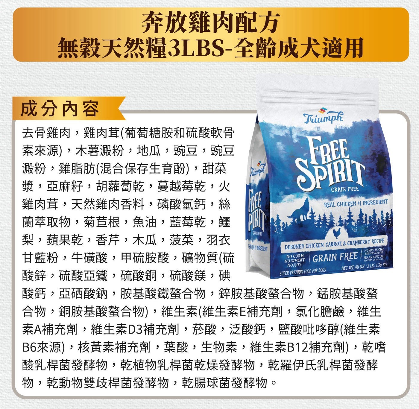 | 品名 | 奔放 無穀天然犬糧 雞肉配方 1.36公斤 |