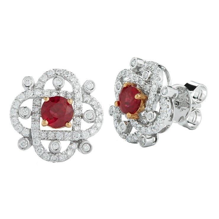 0.57 ctw 18kt White Gold Ruby Diamond Earrings VS2/I