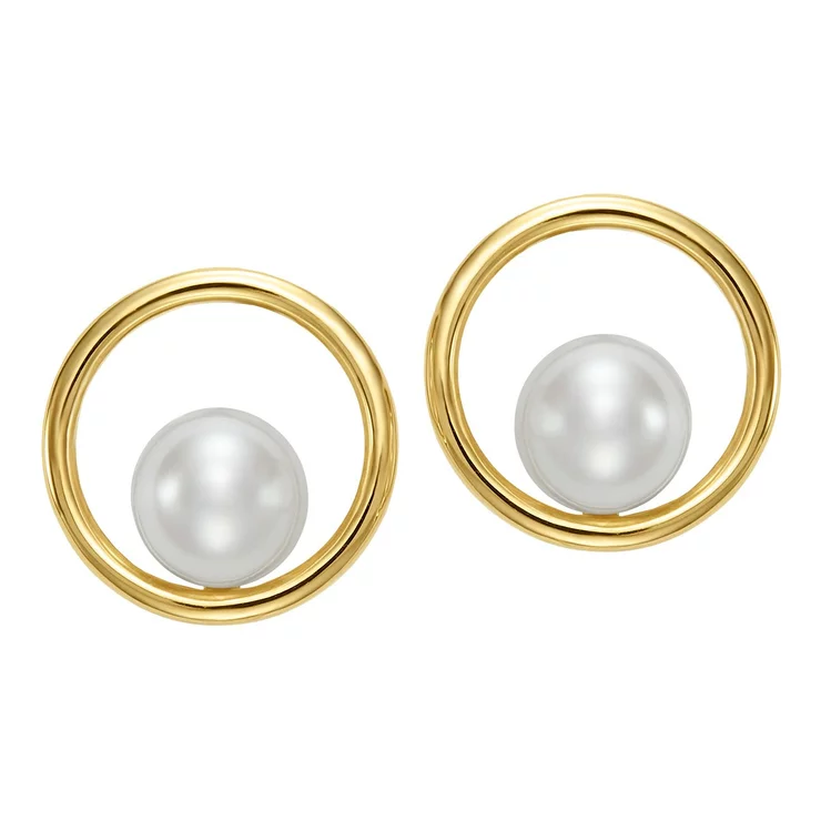 Freshwater Pearl Earrings 14K Yellow Gold 7 mm - 7.5 mm