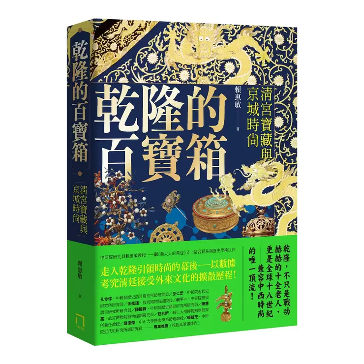 本書作者為中研院近代史研究所賴惠敏教授,以清代商貿史為研究專長的賴教授把研究重點放在引領時尚的幕後,特別利用內務府檔案及其他文獻資料,經過綿密的統計和分析,呈現出清代皇室的「數字化管理」之思維和能力,輔以故宮典藏文物圖為對照,分章闡述各類清宮寶藏與工藝技術間的關連,描述和分析了乾隆時代清宮廷的美學、時尚和技術。