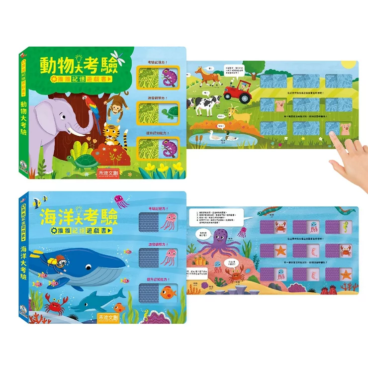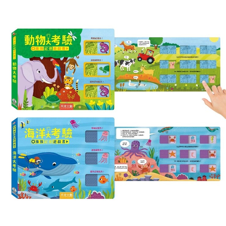 | 品名 | 推推記憶遊戲書套書(共2冊):海洋大考驗+動物大考驗 |