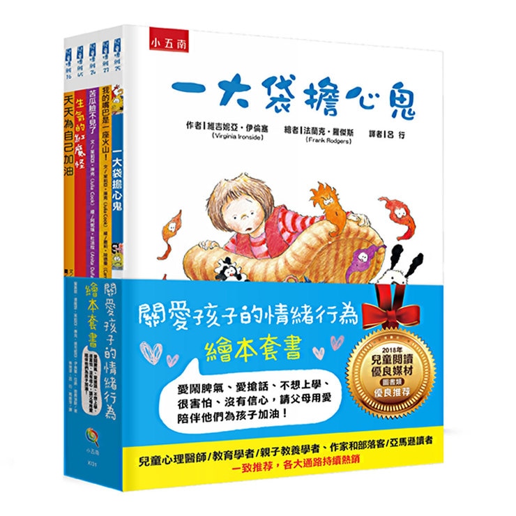 五冊繪本描述孩子常出現的行為,如:鬧脾氣、搶話、不想上學、很害怕、沒有信心。